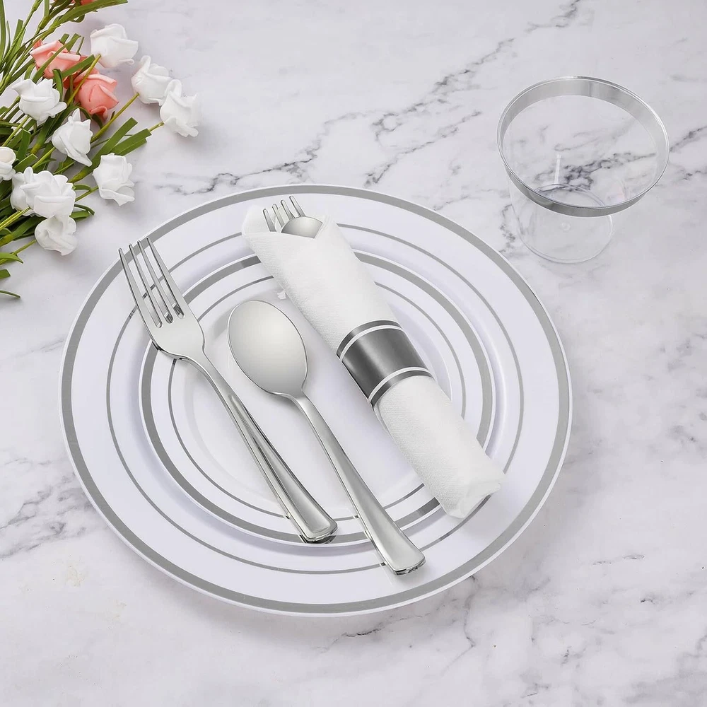 Goodluck 175 Piece Silver Plastic Dinnerware Set for 25 Guests