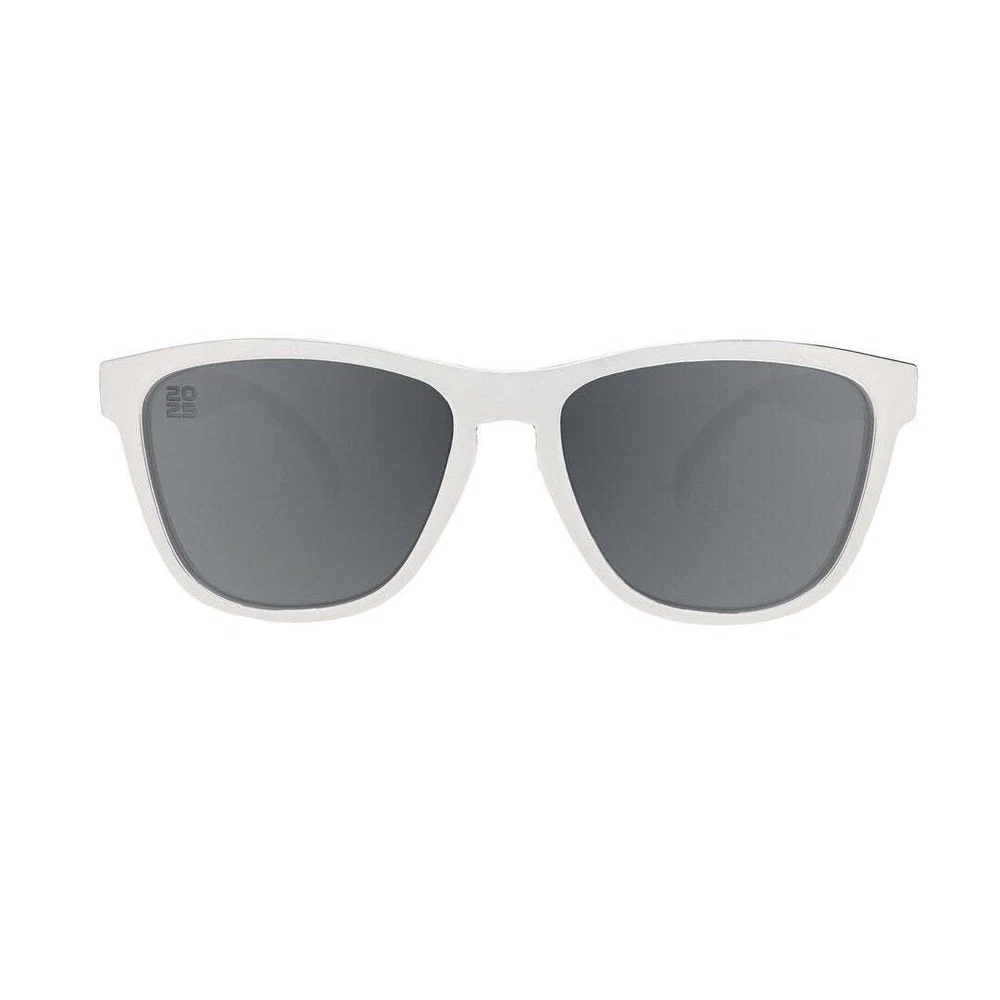 *Limited New Years Goodr's! For a prosperous New Year, don't forget to be Chrome by Midnight. These gleaming metallic silver shades are chrome-a-licious to the MAX. Thanks to our proprietary magic formula, they're still no slip, no bounce (despite their shiny appearance!!!) Classic shape with no slip, no bounce, all polarized performance. Quite simply the best looking running sunglasses you can buy for less than $100. We started with the belief that running is fun and your stories and gear should be too. Our goal was to create the best pair of running sunglasses for under $30 and we did it!