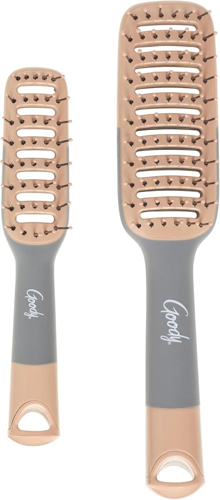 Goody Detangle It Vented Hair Brush, Quick Drying Detangler Brush with BROWN Product Details Item Weight: 4.8 ounces Manufacturer: Goody Country of Origin: China Item Package Dimensions L x W x H: 10.71 x 5.75 x 1.54 inches Brand Name: GOODY Target Audience Keyword: Unisex Adult Directions: Use the brush for detangling and drying hair with gentle strokes to avoid pulling and tugging. Color: BROWN Material: Nylon Number of Items: 2 Package Dimensions : 10.71 x 5.75 x 1.54 inches; 4.76 ounces Manufacturer : Goody Country of Origin : China Brand: GOODY Shape: Vented Bristle Material: Nylon Handle Material: Rubber Quick-Drying Detangling Brush: The Goody Detangle It Vent Brush easily removes knots and allows the air to circulate, helping hair to dry quickly. This Earthy-toned tangle-busting vented bristle brush helps hair dry faster with a smooth finish Frizz-Free, Smooth Hair: The nylon bristle hair brush actively combats frizz, ensuring a smooth and polished look. Helps reduce the amount of time needed to fully dry your hair, ensuring that there is no frizz or damage to your hair Ergonomic Handle: This detangler brush has a soft-touch handle that ensures a firm hold during use. Whether you have straight, wavy, or slightly curly hair, this vented hair brush provides a secure grip, making your daily hair care routine a breeze All Hair Types: This detangling hair brush is perfect for wet or dry hair, offering tangle busting detangling and quick drying. Whether you're styling damp locks or putting the finishing touch on dry hair, this styling brush enhances manageability It's All Goody: We firmly believe that fun and function are not mutually exclusive. Goody is with you every step of the way, with bright patterns and essentials that last because, we know that one little accessory can change everything Experience easy manageability and quick drying with the Goody Detangle It Vent Brush. This exceptional vented brush is a must-have for those looking to effortlessly navigate their haircare routine. The smart design of this tangle-taming brush is crafted to simplify your life. Featuring a vented structure, this brush not only aids in detangling but also accelerates hair drying time. No more prolonged waiting – get ready quickly and achieve a seamless finish effortlessly. The ergonomic handle ensures excellent control, making your styling experience both comfortable and efficient. Fitted with nylon bristles, this brush is your weapon against frizz. It not only combats frizz but also improves manageability, leaving your hair looking sleek and well-groomed. The earthy tone adds a touch of elegance to your beauty regimen. Whether your hair is wet or dry, this versatile brush is your ultimate tool for detangling and fast drying. It eliminates the need for pulling and tugging, making the process a delight. Transform your daily haircare routine into a pleasurable experience with the Goody Detangle It Vent Brush – a perfect blend of beauty and functionality. Bringing style and innovation to your accessory game, Goody believes that fun and function are not mutually exclusive. Goody is with you for every moment of every day with bright prints, patterns, and fashion accessories to step up your game and never-fail essentials for styles that last. Because Goody knows, one little accessory can change everything.