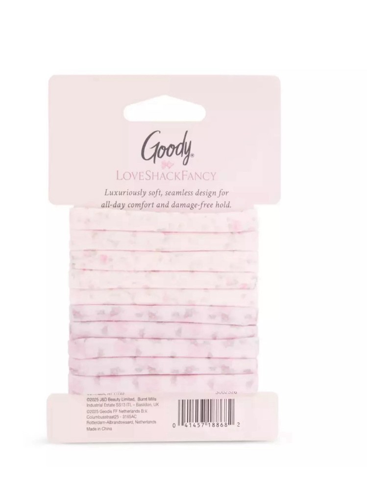 Crafted in collaboration with LoveShackFancy, the Goody x LoveShackFancy Seamless Elastics offer a touch of elegance and grace to your everyday hairstyle. The Rosa Beaux and English Ivy Pink hair ties are designed with a versatile palette that complements a variety of outfits, perfect for the fashion-conscious woman on the go. These hair ties are not just about style; they are also about quality and practicality. The elastic material ensures a snug and secure hold, while the seamless design leaves no bulky knots or kinks in your hair. Whether you're aiming for a sleek ponytail or a playful braid, these Goody hair ties are an essential accessory for any wardrobe.