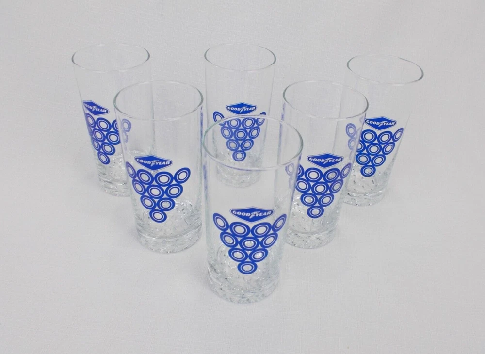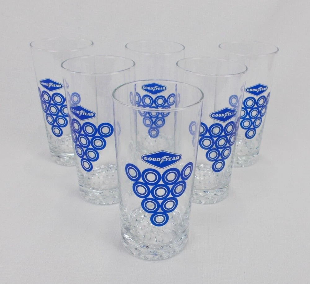 1960's NOS (new old stock, never been used )Goodyear tire Benelux ( European department) set of 6 racing team drinking glasses .look at pictures ,there part of the description. Question ? Send me a message 7 oz.