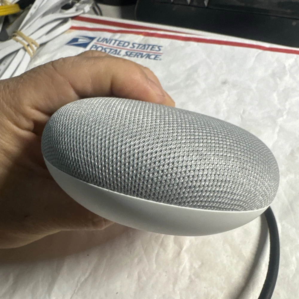 Google Home Mini (H0A) Smart Assistant 7926L98CJN, With USB Cable and USB power block All comes as seen in the pictures of the item listing for sale with only USB cable and USB power block and no other accessories are not included. The unit had been reset and ready for new setup