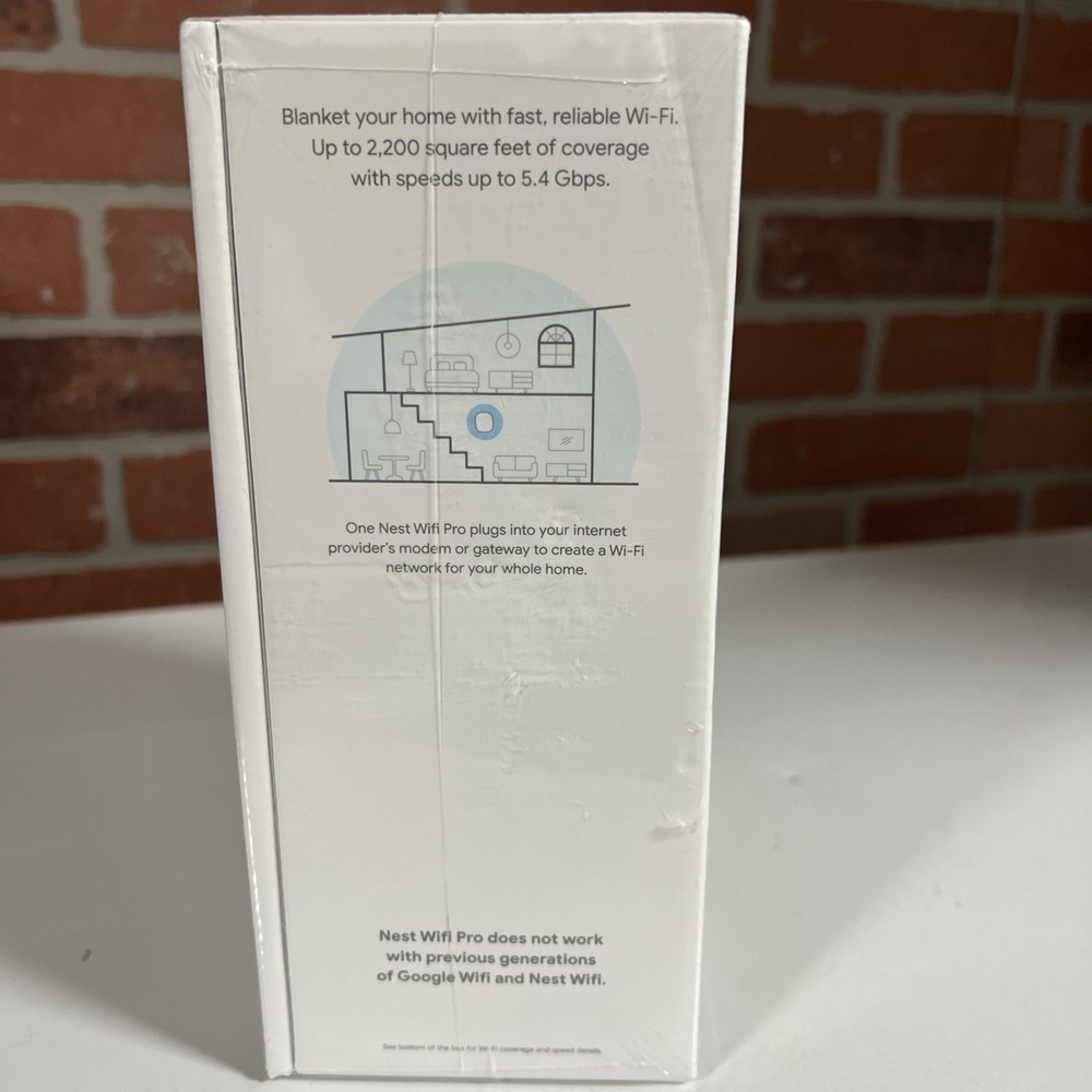 The Google Nest WiFi Pro is a high-performance Wi-Fi 6E mesh router in white color, designed by Google. It features three bands with MU-MIMO technology, providing fast and reliable wireless connectivity for your devices. With two LAN ports for wired connections, the Nest WiFi Pro offers a seamless and secure internet experience for your home or office network.