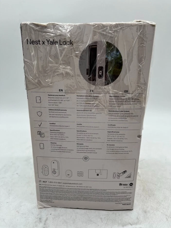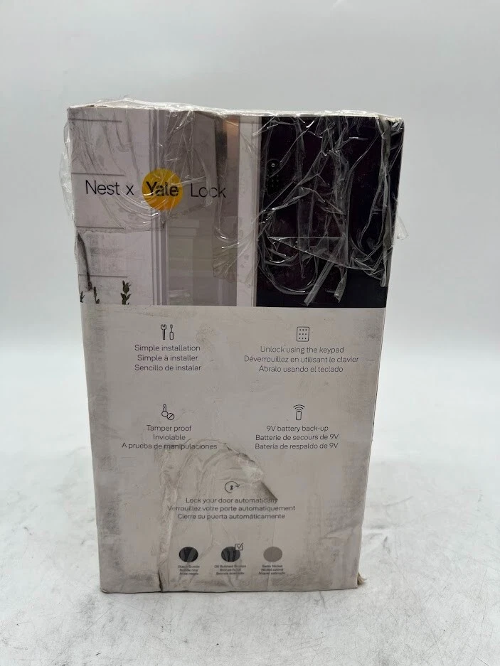 The item is new, unused. Listed as open box due to the fact there is some packaging distress. Upgrade your home security with the Nest x Yale Lock , a tamper-proof smart lock designed for modern living. Say goodbye to traditional keys and enjoy the convenience of locking and unlocking your door from anywhere using the Nest App. With customizable passcodes, remote access, and seamless integration with Google Assistant, this lock combines cutting-edge technology with sleek design to provide a smarter way to protect your home. Key Features Secure and Tamper-Proof Advanced Security : Replaces your existing deadbolt with a tamper-proof smart lock. Privacy Mode : Disables the keypad for undisturbed moments. Convenient Access Options Keyless Entry : Use the LED keypad to unlock the door without a key. One-Touch Locking : Quickly lock your door with a simple tap. Custom Passcodes : Share unique codes with family and guests, with scheduling options for added control. Remote Control and Alerts Nest App Integration : Lock and unlock the door, check its status, and get alerts on your phone. Mobile Alerts : Notifications for locking, unlocking, and tampering attempts. Smart Home Compatibility Google Assistant Enabled : Control your lock hands-free with voice commands. Auto-Lock Feature Set and Forget : Automatically locks when you’re away for added peace of mind. Durable and Stylish Metal Finishes : Available in Satin Nickel, Oil Rubbed Bronze, and Black Suede to match your home’s aesthetic. Standard Door Compatibility : Designed for easy installation on most standard doors. What’s in the Box? Nest x Yale Smart Lock Installation hardware Quick start guide We take great care to inspect all items and ensure they are accurately described. Should you have any issues with your purchase, please let us know immediately. We are committed to resolving any concerns promptly and to your satisfaction. Our small business truly appreciates your patronage.