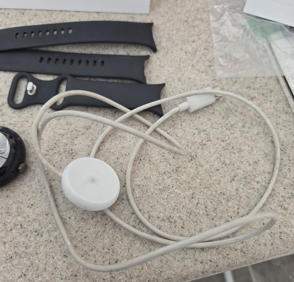 Google Pixel Watch 41mm Matte Black Stainless Steel Case with Obsidian Active Purchased new for my son but he never really used it. There are some marks/scratches as reflected in the pics, but otherwise new condition. Comes with the watch bands, charger, instructions, and of course the pixel watch. Smoke-free home Shipping available with USPS Priority