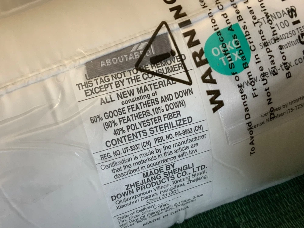Goose Feather Down Pillows 90% Feathers ABOUTABED 2 Standard Size Pilliows NEW