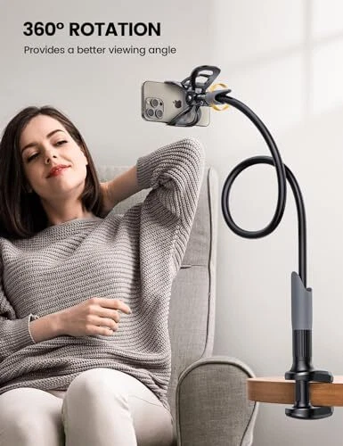 Return Policy Fast Delivery Trusted seller Gooseneck Phone Holder for Bed - Cell Phone Mount Clamp Clip, Flexible Long Arm, Overhead Mount for Desk Headboard Bedside, for iPhone 16 Pro Max, 15 Pro Max, 14 Plus, 13 Mini & 4-7" Phone Product Description 【Upgraded Version】Based on the pain points of similar products "Very shaky. Sag slowly after a period and can't keep a position for your phone anymore", the arm of our gooseneck phone holder for bed adopts better materials and design. It has improvements in both stability and durability. Noted: the long arm is not a super flexible type, which aims to add stability. 【Multipurpose Phone Holder】The gooseneck phone clamp mount is designed to: watch Netflix handsfree while lying in bed or sofa at home, use facetime with families when clipped on the desk, read recipes in the kitchen, taking selfies. And it also can be an overhead phone holder for video recording. 【Easy to Install】Featuring the adjustable clamp base varying from 0 to 2.36 inches (6cm), the cell phone clip holder can be securely mounted on the bed frame, bedside, headboard, nightstand, desk, end table and kitchen counter etc. A non-slip silicone base won't scratch the surface of your furniture. 【Stable and Durable】As for the 33.4 inches (85cm) bendable lazy long snake arm, high- quality Aluminum-magnesium alloy solid core makes the lazy arm sturdy enough to hold his phone firmly, yet flexible to bend in any direction to accommodate your view. It will be a lifesaver for protecting you from neck pain. 【Support 4-7'' Smartphones】The 360-degree phone lazy bracket is compatible with 4-7'' devices, namely almost all cell phones, like iPhone 16 Pro Max, iPhone 16 Plus, iPhone 15 Pro Max, iPhone 15 Plus, 14 13 Pro Max, 12 Mini 11 Pro XS Max XS XR X 8 Plus 8 7 Plus 7 6S Plus 6S 6 SE, Galaxy S24 S24+ S24 Ultra, S23 S23+ S23 Ultra, S22 S21 S20 S10 Edge etc. Shipping Returns Payment Shipping Shipping is FREE to all addresses other than APO/PO boxes in the lower 48 states. All our stock ships from US-based warehouses. Shipped via USPS or UPS (depending on location and package weight) Unless stated otherwise, all orders will ship within 24-72 hours of your payment being processed. Check our feedback to see the great reviews of FAST shipping we offer. Returns Seller does not accept returns Payment We currently accept payment via eBay managed payments only. Once payment is cleared, we will dispatch your shipment within 1-3 business days. Please refer to the "Shipping" tab for more information regarding shipping speed to your destination.