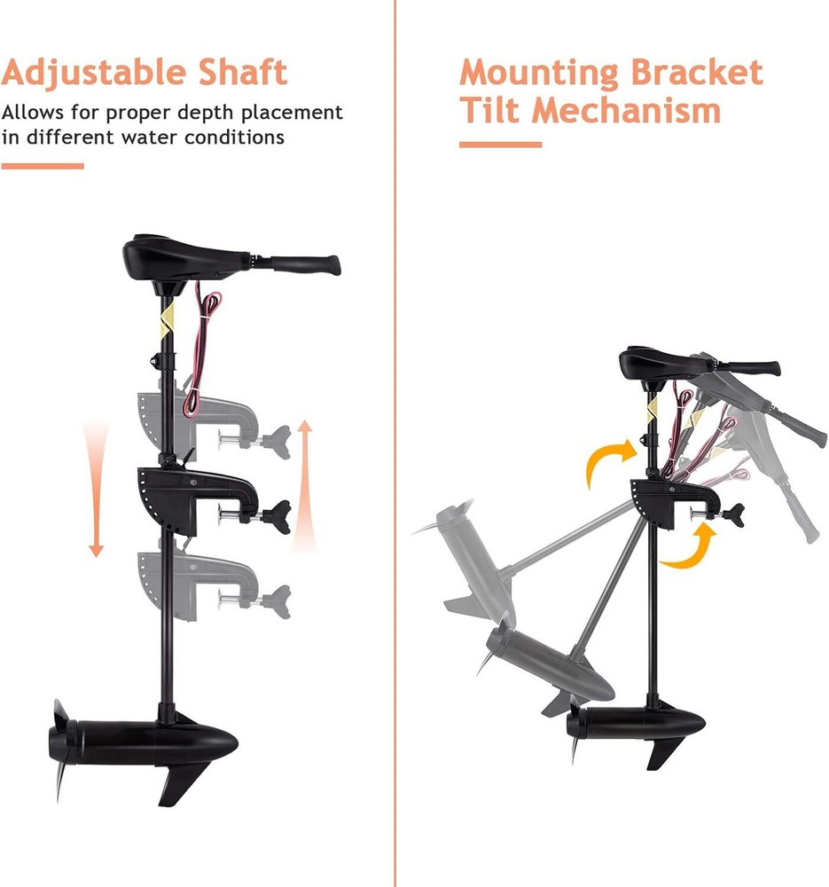 Goplus Electric Trolling Motor 8 Speed, Boat Fishing Motor w/Telescoping Handle, Two-bladed Propeller, LED Battery Indicator and 36" Shaft for Freshwater Saltwater Use Item Description About this item 【Powerful & Quiet Trolling Motor】The 46/55/86LBS pound thrust to this electric trolling motor gives you a lot of power to push the boat with strong force to generate a wake off and on for several hours before requiring a charge. And even at the full speed, the motor can run very quietly. 【Forward & Reverse Speed Adjustments】The 8 speed control system (5 forward speeds and 3 reverse speeds) allows you to fully control the motor through the dial on the ergonomic telescopic handle, so as to achieve a smooth, highly adjustable ride. The reverse speed will let you get rid of any jams! 【Sturdy Built for Salty or Fresh Water Use】Made of glass fiber composite rods, durable die-cast aluminum heads and reinforced composite materials, it can resist bending, warping and damage, and is very suitable for use in fresh water and salt water. When trapped in heavy weeds, it will trip the fuse before it blows to prevent burning the motor. 【Adjustable Shaft for Easy Maneuver】The adjustable shaft allows for proper depth placement in different water conditions. Together with the mounting bracket tilt mechanism, you can set it to desired height and angle to comfortably steer by sitting or standing, so that you don’t have to bend over from your pedestal seat to operate it. 【Portable Design with LED Battery Indicator】The transom mount trolling boat motor is powerful and easy to operate. The battery light on this motor is also a big advantage in helping you know when it's either time to go in and recharge, or take out a second battery. › See more product details You can plug or press the knob to adjust the shaft angle to meet your surfing deamnd. And you can freely reset the normal position to slow down. You can adjust the depth of propeller by moving the position of the clamp to speed up or decelerate and meet your different moving needs. The handle is telescoping to be longer or shorter according to your various needs and likes. And you can move foward or reverse by adjusting the knob. You can lossen the 2 fixing screws to adjust the positions to meet your different moving demands. And the thread screws are not easy to drop down while the calmp is steady and durable. The light LED lights inform you that how much power is left timely, helping you protect the batteries and lasting for long service time. The solid fixed ring is also adjustable according to the position of the boat clamp, avoiding the clamps moving up and keep it stable with security. Payment We accept payment only through PAYPAL Shipping We ship products worldwide through standard express courier service, it will reach within 7 to 10 days to abroad buyers, we ship the product after recieved clear payment and give full information about shipment to the buyer Return We accept product return within 7 to 21 days from delivery date but product should be in original position and not in damaged condition,the return shipping charges will be buyer responsibility