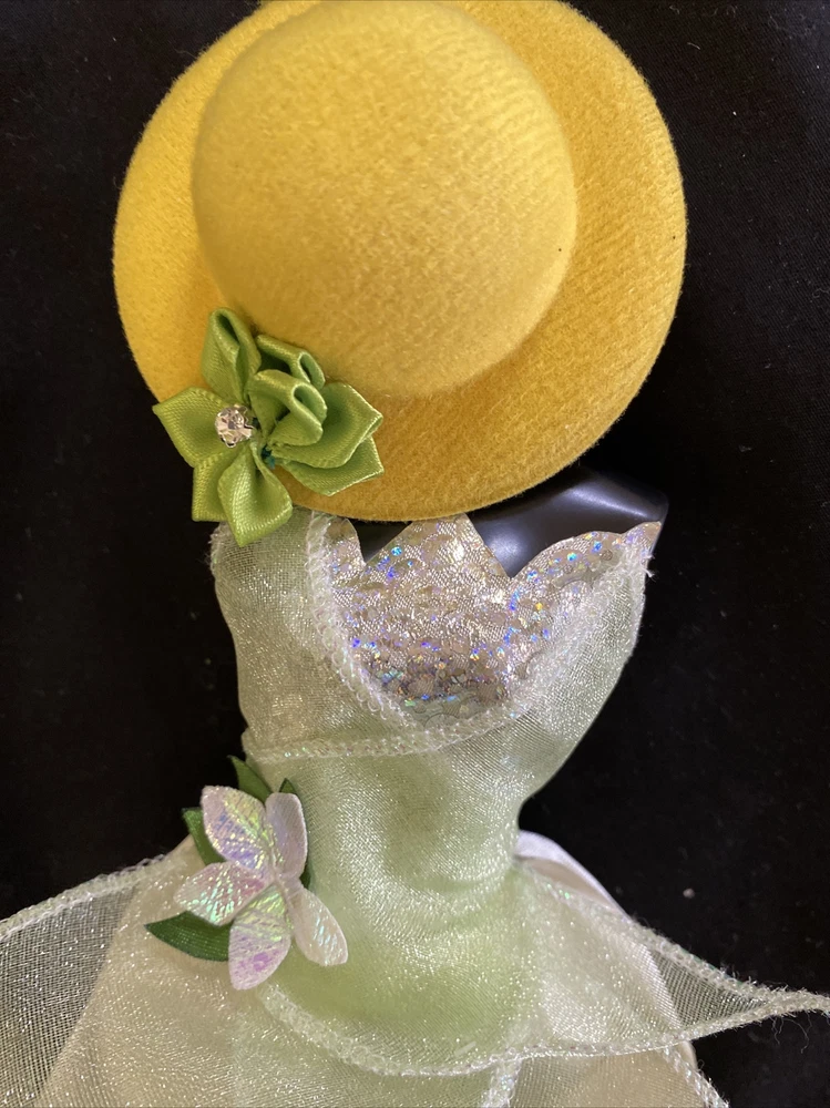 Gorgeous Barbie Lemon Yellow Satin Ballgown fedora Shoes
