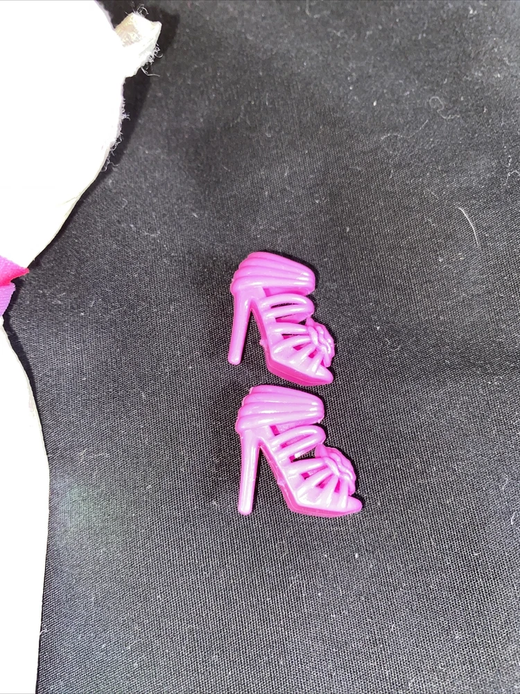 Gorgeous Barbie White Pink glittery Sleeveless Dress Fedora Shoes