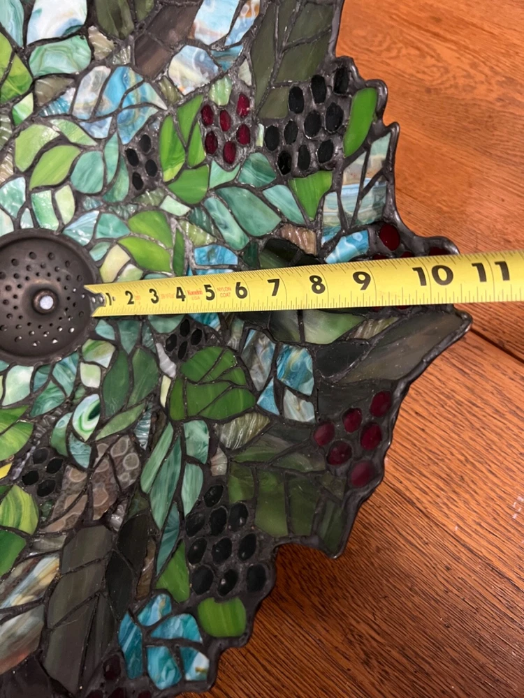 Gorgeous Dale Tiffany Stain Glass Lamp, Grape Vine Shade With Over 100 Jewels- #B Beautiful Lamp, The Pictures Don't Do It Justice. Excellent Working Condition, Very Heavy. There Is Some Chipping Of The Bronze Finish Up Where The Chain Ball Rubbed On The Lamp-See Last Photo Measures Approx 28"H Shade Approx 19"W x 10"D Bulbs not included We have 2 of these lamps - check out of other listings if interested in both Please see photos for details and condition ***Most items ship within 2-3 business days*** **** I ONLY SHIP WITHIN THE LOWER 48 OF UNITED STATES **** Please note: Shipping charge posted to this listing is based on shipping within the lower 48 of United States – if you live outside of the continental US and are interested in one of my items, please message me prior to purchasing the item so that I can provide you with accurate shipping charges. The only exception would be if you qualify for eBay’s international shipping that first processes through a domestic hub. Failure to do so could result in your purchase being cancelled.