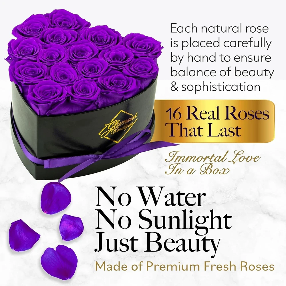 Gorgeous Heart-Shaped Box of 16 Purple Eternal Roses - No Maintenance Required ‹ › ‹ › ‹ › ‹ › ‹ › ‹ › ‹ › ‹ › ‹ › ‹ › Gorgeous Heart-Shaped Box of 16 Purple Eternal Roses No Maintenance Required Timeless Elegance in Every Box Encased in a beautifully crafted heart-shaped box, our preserved flowers are meticulously arranged to create a stunning display of eternal beauty and love. Each rose is a testament to sophistication, designed to bring joy and elegance into any space. Crafted to Last for Years These exquisite roses are made from real blooms using a premium preservation process, ensuring that they retain their natural charm and vibrancy for up to 3 years. Celebrate life’s precious moments with a gift that will endure. Hassle-Free Maintenance Say goodbye to the daily upkeep of traditional flowers! These roses forever birthday gifts for women require no water, sunlight, or maintenance. They maintain their elegance and beauty effortlessly, making them an excellent choice for long-lasting gifts or captivating centerpieces. Versatile Colors & Arrangements Choose from an array of stunning roses in various box sizes (7, 16, 27, or 50 roses) and an elegant palette including Red, Blue, Pink, Tiffany, and more. Find the perfect match for any occasion or indoor style, and let your gift stand out with elegance. An Exceptional Gift Idea Delight your loved ones with these luxurious roses, a symbol of everlasting love. Perfect for various occasions such as Valentine’s Day, Mother’s Day, weddings, anniversaries, birthdays, or simply as an enchanting addition to home decor. Choose the heart-shaped box of Eternal Roses and gift a piece of beauty that lasts! Shipping Free & Fast Shipping - We offer free shipping to most of the USA with a normal delivery time of 3-7 days. However, due to the current situation, additional delivery time (up to 3 weeks) may be required for some items. Alternative Carriers - We may use alternative carriers (e.g. USPS, FedEx, UPS, etc.) to ensure your package arrives safely and on time. Due to the use of multiple carriers, we are unable to provide a tracking number automatically. Handling Time - Orders are processed and shipped within 1-2 business days of receiving cleared payment. Shipping Restrictions - Shipping to Alaska, Hawaii, Puerto Rico, Guam, and other US territories may incur shipping charges or delivery restrictions. Please contact us before ordering, or your order can be refunded/cancelled. State Restrictions - There may be restrictions based on your state of purchase. For example, certain items may not be shipped to California due to state regulations. Contact for Tracking Updates - If you require tracking updates or have any concerns about the delivery of your order, please feel free to contact us, and we will be happy to assist you. Return 30-Day Hassle-Free Returns - We want you to be completely satisfied with your purchase. If you are not, you can return the item within 30 days of receiving it for a full refund or exchange. Easy Return Process - To start a return, simply contact us and we will provide you with a prepaid return shipping label and detailed instructions. Restocking Fee - There are no restocking fees for returns. However, the buyer is responsible for return shipping costs if the return is not due to a seller's error. Refund Processing Time - Refunds will be processed within 5 business days of receiving the returned item in its original condition. Payment We accept all major credit cards, PayPal, and Apple Pay for your convenience. Your payment information is secure and encrypted to ensure a safe and seamless transaction. Please complete your payment within 3 days of purchase to avoid any delays in shipping. Feedback Your feedback is extremely important to us. We strive to provide the best products and customer service possible. If you are satisfied with your purchase, please take a moment to leave us a positive review. If you have any concerns or issues with your order, please contact us before leaving negative feedback. We are committed to resolving any problems and ensuring your satisfaction. Contact Us If you have any questions or concerns, please feel free to reach out to our customer support team. You can contact us through the eBay messaging system. We are available Monday to Friday, 9:00 am to 5:00 pm EST, and we will do our best to respond to your inquiry within 24 hours. Thank you for supporting our small family business! UPC: Not Set Item Width: Preserved Roses Unit Quantity: 1.43 Material: Preserved Flowers,Real Roses Common Name: Rose,Eternal Rose,Immortal Rose,Preserved Rose Brand: Unbranded Product: Preserved Roses Type: Flower Box Artificial/Fresh: Artificial Form: Arrangement & Centerpiece Color: Purple Occasion: Valentine's Day MPN: Not Set Theme: Hearts Size: 16 roses Country/Region of Manufacture: Not Set Item Height: Not Set Number in Pack: 1 Unit Type: lb Personalize: Not Set Personalized: Not Set