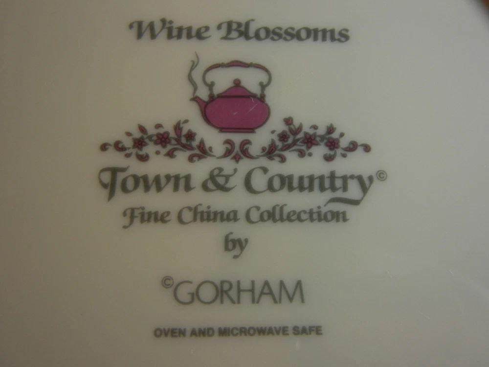 Manufacturer: Gorham China Pattern: Wine Blossoms Item: Salad Plate Size: 8 3/8" diameter Condition: Excellent Shipping for domestic and Canadian rates can be found in the item description. We will ship international and rates will be determined by location.
