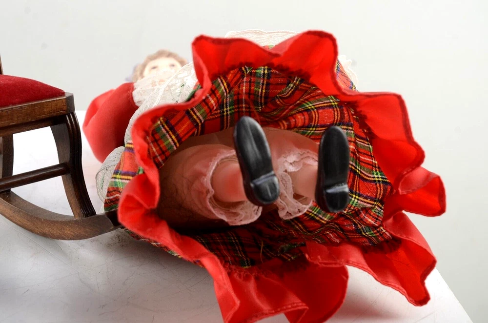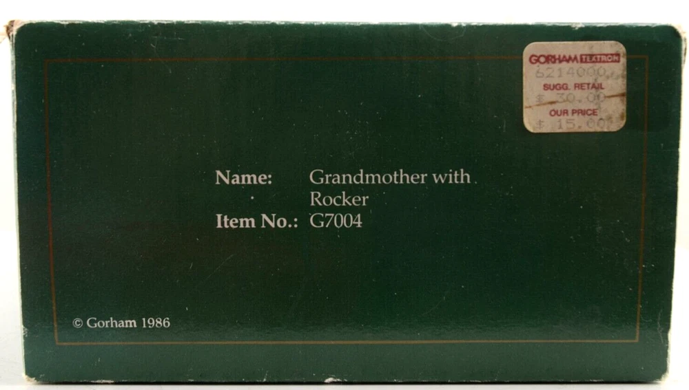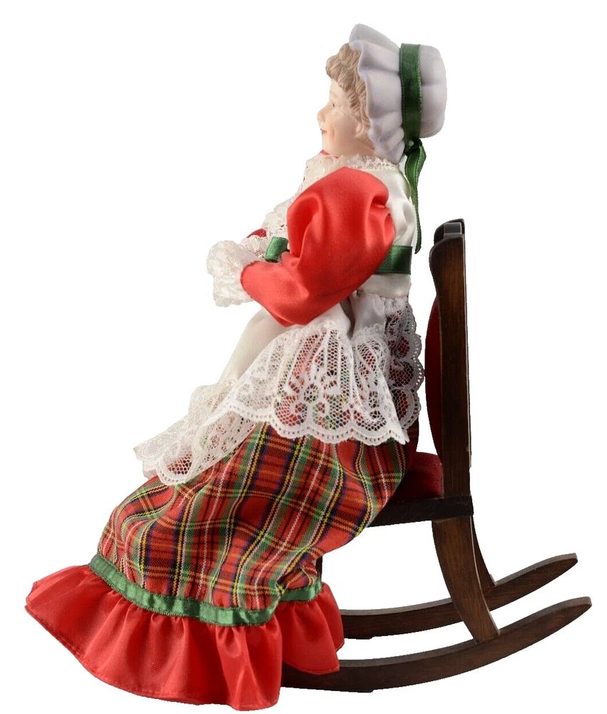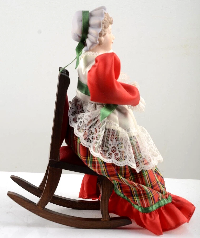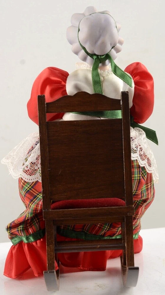 A Gorham Family Christmas #G7004 Grandmother with Rocker Doll in Excellent Vintage Condition. Made in 1986 This Doll is Sitting on a Rocking Chair. Grandma is Approx. 10" Tall and When Sitting in Her Rocking Chair She is Approx. 9" Tall. Part of a Collection" A Gorham Family Christmas".