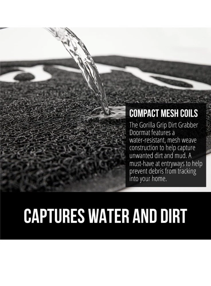 Room: Any Room, Basement, Bathroom, Bedroom, Conservatory, Dining Room, Foyer, Garage, Guestroom, Hallway, Home Office/Study, Kitchen, Living Room, Lounge, Nursery, Patio, Porch, Terrace, Trailer, Utility/Laundry Room Personalized: No Pattern: Chevron Features: Easy to Clean, Non-Slip Item Length: 24 Material: Rubber, Woven fabric Brand: Gorilla Grip Style: Modern Size: 24 x 36 in Item Width: 36 Personalize: No Country/Region of Manufacture: China Type: Door Mat Color: Black Shape: Rectangle