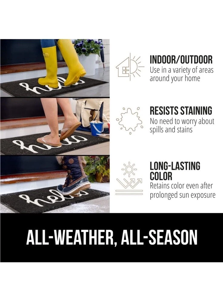 Gorilla Grip All Weather Hello Door Mat 36"x24" Mesh Doormat Gray & Black. Condition is New with tags. Shipped with USPS Ground Advantage.