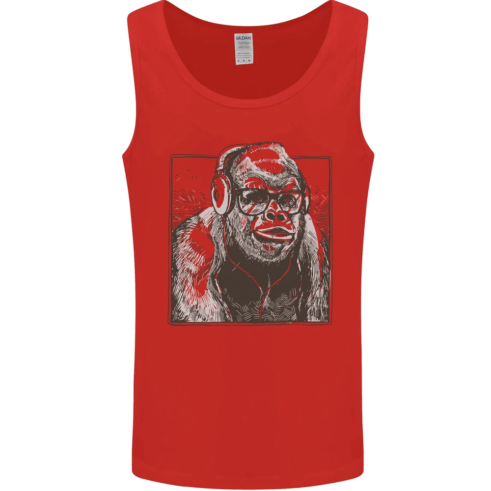 Gorilla with Headphones DJ Dance Music Mens Vest Tank Top
