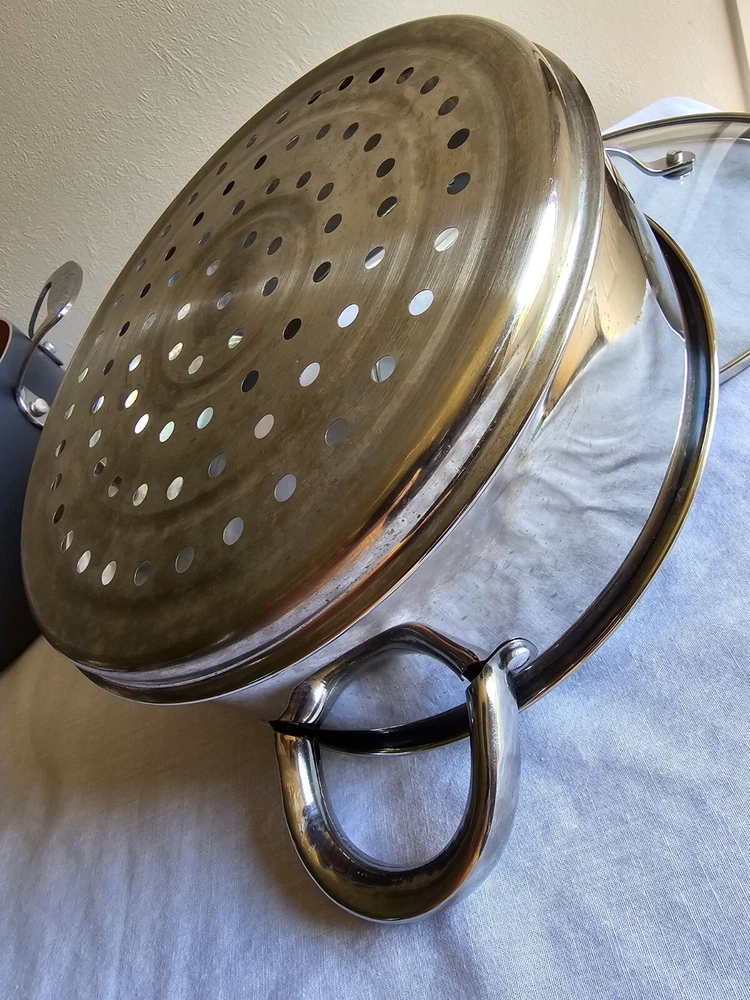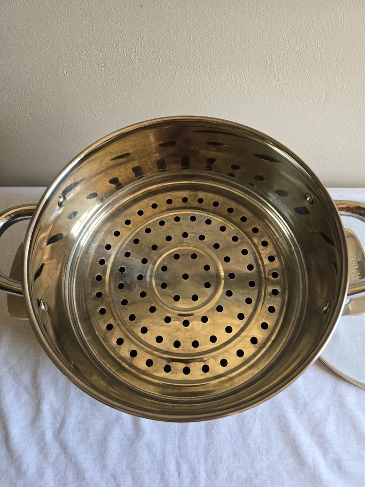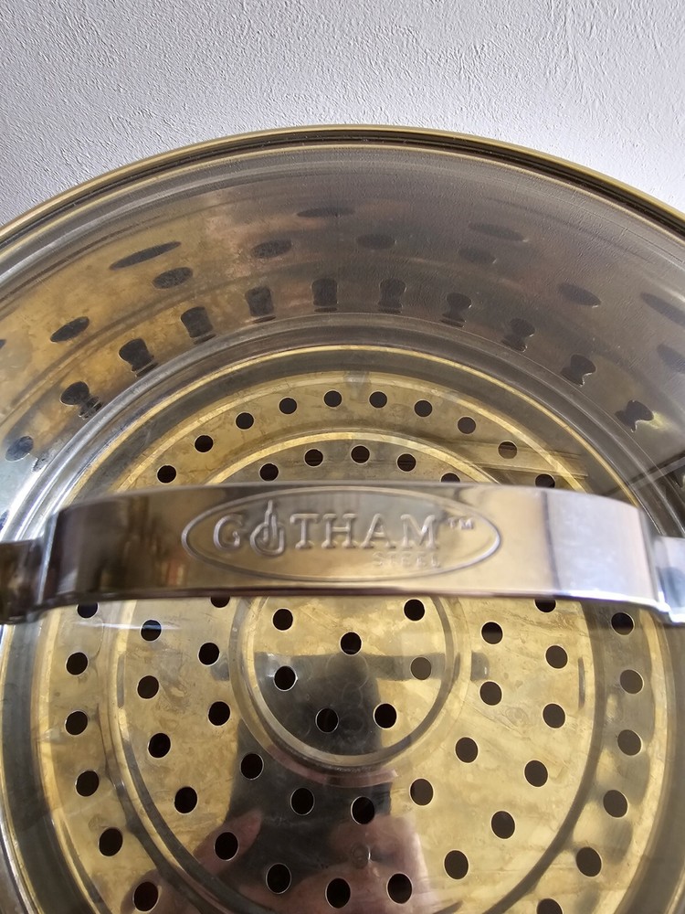 Country/Region of Manufacture:ChinaModel:unknownSet Includes:Lid, Steamer, StockpotBrand:Gotham SteelSurface Coating:CeramicType of Oven:Electric, GasMaterial:Aluminum, TitaniumType:StockpotFeatures:Easy Clean, Non-StickHeat Resistance:unknownStove Type Compatibility:Electric, GasShape:RoundColor:GrayNumber of Items in Set:Three-PieceItem Diameter:9.5 in