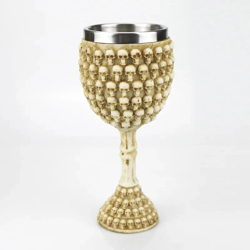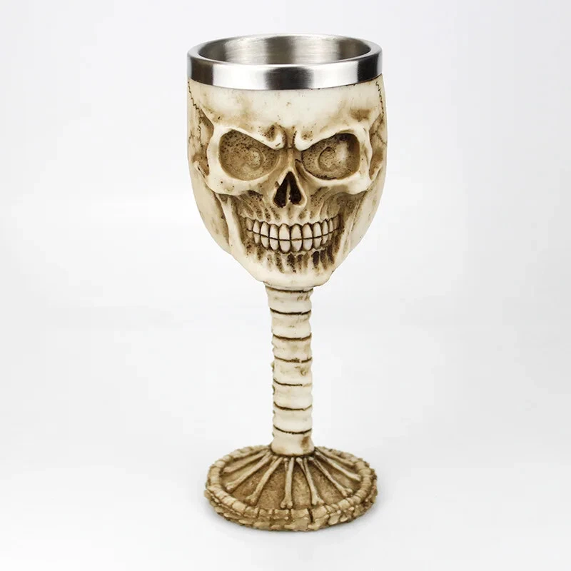 Product Description: Unleash your dark side with this Gothic 3D Viking Skull Wine Goblet , a striking piece designed for those who appreciate unique and bold drinkware. Crafted from high-quality resin with a stainless steel inner liner , this goblet features intricate details such as a dragon claw grip, skeleton spine stem, and Viking skull motifs . Whether you’re sipping wine, whiskey, mead, or ale, this goblet adds a medieval, gothic touch to any occasion. Perfect for collectors, themed parties, and as a statement piece for your home bar. Why You'll Love It: Intricate 3D Design – Features a realistic Viking skull, dragon claw, and skeleton spine details. Durable Construction – Made from high-quality resin with a stainless steel inner lining. Versatile Use – Ideal for wine, whiskey, ale, mead, or any beverage of choice. Perfect Gift for Collectors – A must-have for gothic, Viking, and medieval enthusiasts. Easy to Clean – Stainless steel insert ensures durability and effortless maintenance. Make every sip legendary with this Gothic Viking Skull Wine Goblet!