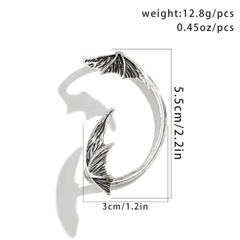 Features: Fashion Bat Cuff Wrap Earrings-The clip on earrings is for non pierced ears. Dainty fake earrings, could be put on in dress up or causal. Elegant fashion jewelry earrings for Women Teen Girl.The unique earrings can highlight your appearence, grasp everyone's eyes in your party. Fashion ear cartilage cuff earring,Hypoallergenic metal for sensitive ears. on weddings, Christmas, Mother's Day, Valentine's Day, anniversaries as well as birthday for your beloved ones,friend, sister, mom, daughter, girlfriend and so on. Specifications: Type:Left Ear, Right Ear Color:Silver,Black Alloy Size:As Picture Shows Quantity:1pc Package Includes: 1x Ear Clip note: Please allow a little error on the size due to manual measurement. The color might exist slightly difference due to different displays.