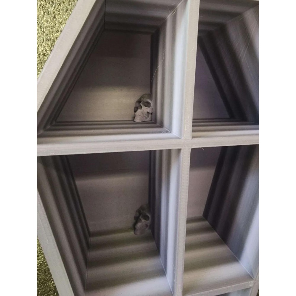 Embrace your dark and spooky side with this Coffin Shelf! Perfect for displaying your favorite trinkets, collectibles, or Halloween decor, this shelf brings a touch of gothic elegance to any room. The coffin shape adds a bold statement, making it an eye-catching piece for horror lovers, alternative decor enthusiasts, or anyone looking to add a bit of mystery to their space. Hang it on your wall or use it as a tabletop display to showcase candles, crystals, or small Halloween-themed items. Its unique design will stand out, creating a spooky atmosphere all year round. Features: Gothic coffin design: Adds a dark and stylish touch to your decor. Versatile display: Great for trinkets, candles, crystals, or other small decor. Durable and lightweight: Built to hold small items securely. Materials: High-quality, sturdy materials for long-lasting use. Shipping: Ships in 1-2 business days. Designed By: AnarchistLlama