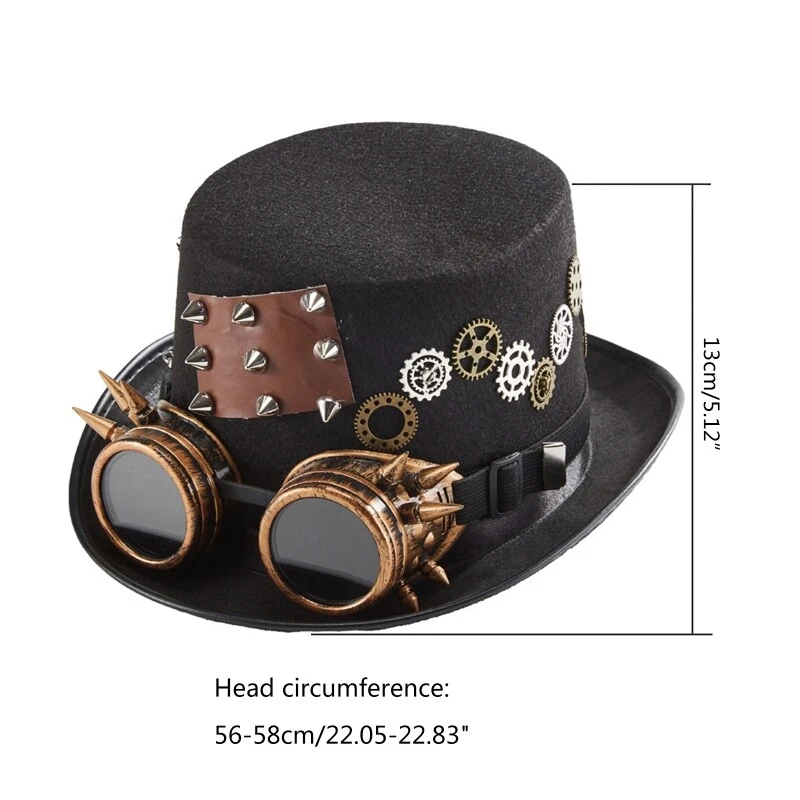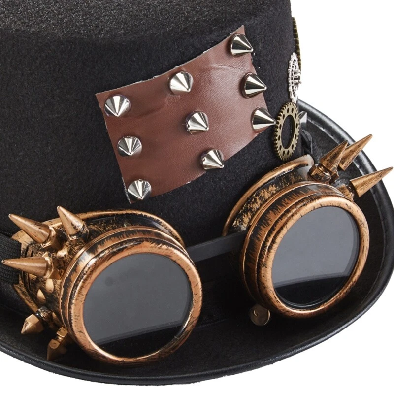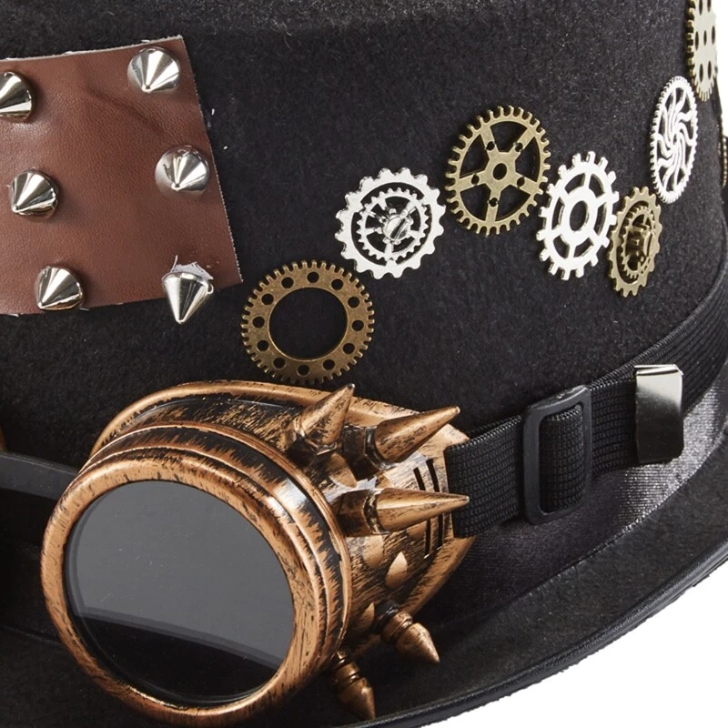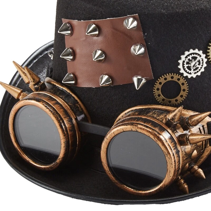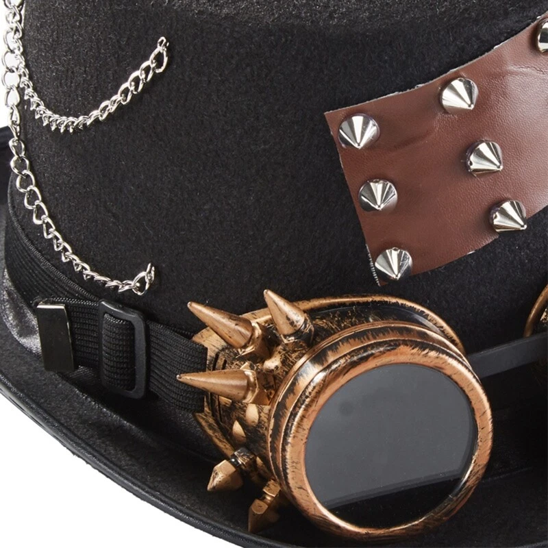 Gothic TopHat Gear Chain Glasses Rivet Hat Steampunk Hat for Carnival Party