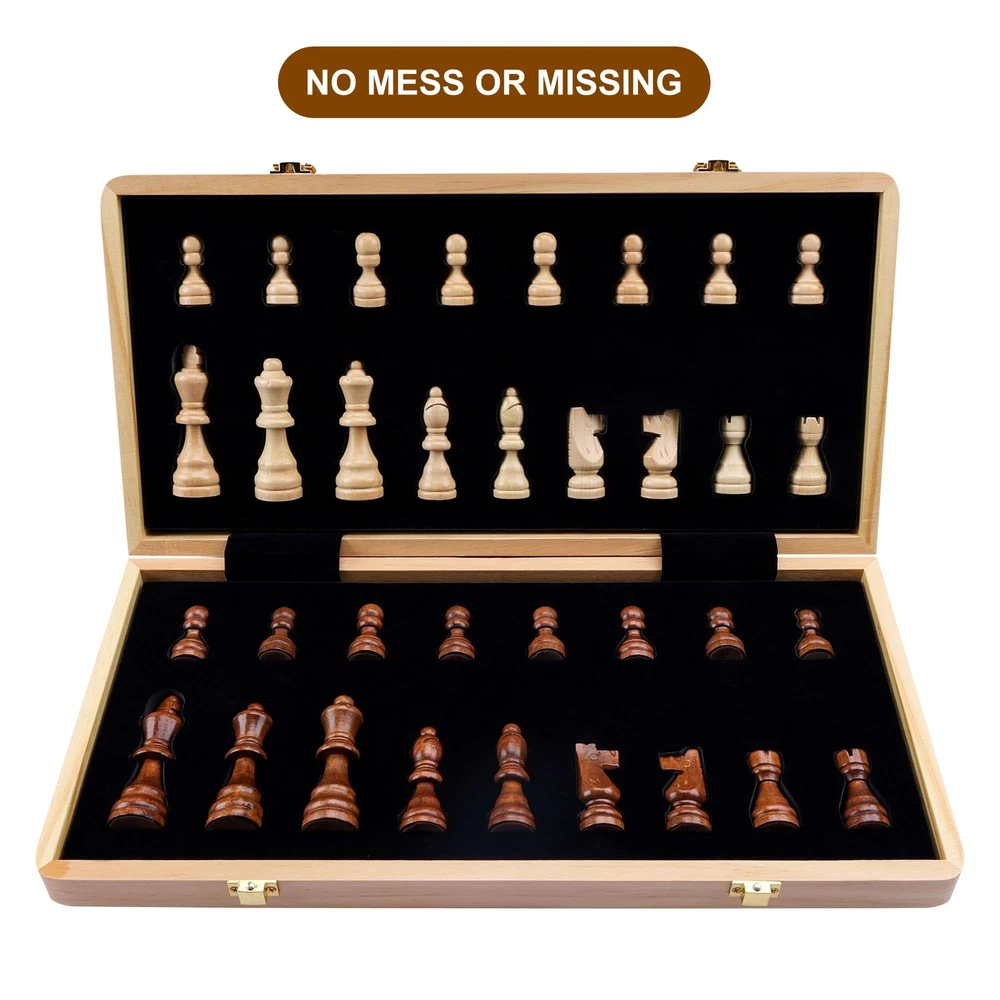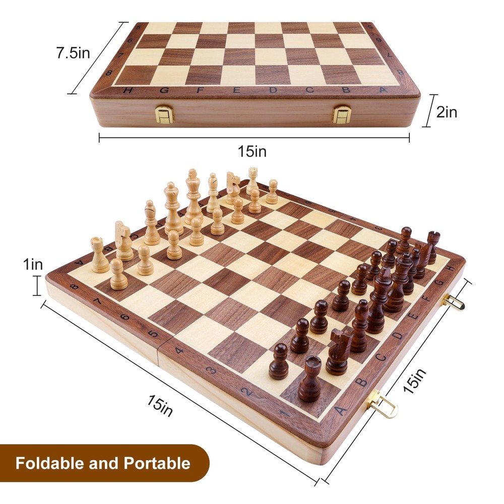 Gothink 15 Inch Magnetic Wooden Chess Set with Manual for Adults and Kids