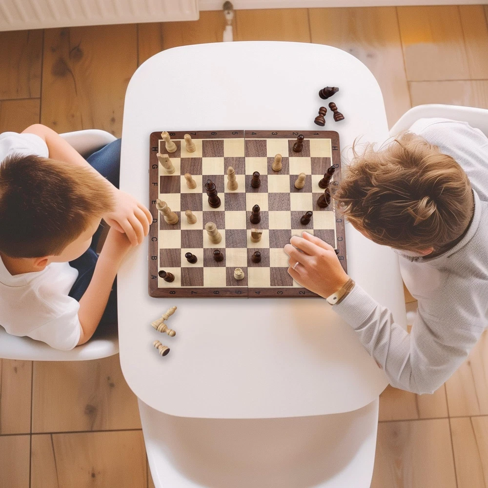 Gothink Magnetic Wooden Chess Board Set with Manual for Adults Kids 15 Inch Chess Puzzle with 32 Wood Handmade Pieces Folding Portable Travel Unique Chess Game for Tournament Professional Beginner Gothink Magnetic Chess is a fun and educational strategy board game played between two players plays on a chess board with 15x15 grid. The chess set not only suitable for adults playing with fun, but also a useful tool to enlighten your kids and stimulate their intelligence.Excellent travel companion for players on the go who will especially appreciate this distinctive travel chess set. Never to late for learning the game of chess Learning how to play chess can seem daunting, even for adults! So many different pieces move in different ways! Fear not! Anyone can learn to play chess. It is never to early or late in life for learning the game of chess. Encouraging high level thinking is critical at any stage in life. ▶ Magnetic Chess Set Features: ✔ Two extra Queen pieces ✔ 16 Felted Staunton white chess pieces, 16 Felted Staunton brown pieces. ✔ 15x15inch Inlaid Walnut playing board. ✔ Book style folding board for easy storage and transport. ✔ An ideal companion for traveling or at home. ✔ Handcrafted chess table and chess pieces. ✔ Durable and sturdy chess pieces for long run fun and mind battles. ✔ Bottom – The felted interior at bottom of each piece to avoid scratches on board ✔ Foam Insert – Comes with foam insert secure each chess piece individually ▶ Chess Set Specifications Board Size: 15 inch x 15inch x 2inch King Length: 3 inches Square Size: 1.7 inch x 1.7 inch Chess Board: Inlaid Walnut Chess Pieces: Natural wood Please note that this product is made of natural wood. Due to its nature every product may have different patterns on surface. [ Benefit From Strategy and Fun Game]:Chess is not only suitable for adults playing with fun but also a valuable tool to enlighten your kids and stimulate their intelligence. Challenge your child to a game of chess ( ajedrez ) and let him use his logical skills to devise strategies to counter your moves. Chess has long been regarded as a game that can benefit learning and development, especially when played from a young age. [ Safe, Environmentally Friendly, and Sustainable] : The wood is certified by the Forest Stewardship Council (FSC) and meets universal sustainability standards. All the materials, including paper, wood, felt, painting, etc. Pass the toy safe test of EN71 (European Toy Safety Standard) and ASTM (American Toy Safety Standard). [Portable Folding Inlaid Walnut Chess Board] : The 15" x 15" chess board is made of smooth inlaid walnut. It folds in half to store the magnetic chessman in the sturdy chess box.A Felted bottom to protect the chessboard from scratches will last you for a long time. An excellent travel companion for players on the go who will especially appreciate this distinctive travel magnetic chess set. This chessboard can be folded easily and locked with two metal latches for convenient carry and storage. [Best Gift Idea] : The wooden folding magnetic chess game board set is made of good quality wood that gives it a classic look. It is ideal for birthday gifts, Father's Day gifts, Christmas gifts, and other events. They can be used indoors or outdoors at home, school, classroom, party, travel, and camping. It's the most popular sharing board game. [High-Quality Guarantee and continuously improved]: This magnetic chess game is made from the finest materials selected. Each product is thoroughly inspected in strict accordance with the specified quality requirements. At the same time, the quality and performance of products will be continuously improved and optimized according to customer opinions. Shipping from the USA All of our products are shipped from the USA, ensuring quick delivery to your destination. Payment We offer the following payment methods: PayPal, credit card, bank transfer, and eBay's secure payment system. Free Shipping & Free Returns Shipping within the USA is FREE. Additionally, any return is absolutely free for you. Risk-Free Purchase You have the option to return an item within 30 days without any justification. We cover the return shipping costs! Fast Shipping We ship immediately upon receipt of payment. Generally, the package is delivered within 2-3 days in the USA. If it takes longer, we will contact you. Quality and Costs Made in Europe, USA, China No customs fees or additional charges Total satisfaction guarantee Invoice with declared VAT available upon request in .pdf format Feedback Your feedback is very important to us. After you pay for your purchase, you will automatically receive positive feedback from us.