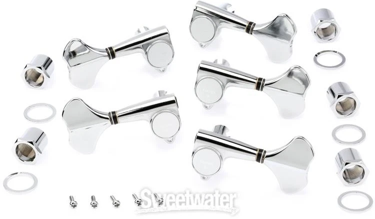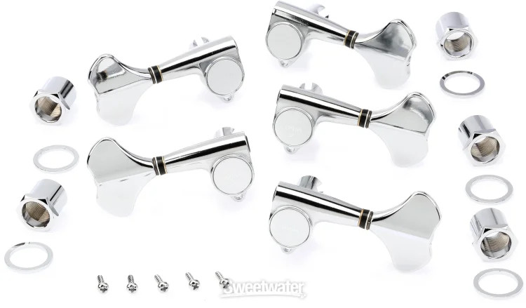 Gear Up for Accurate Pitch Courtesy of Gotoh When it’s time to upgrade or replace your bass guitar’s tuning heads, GB707 bass tuners by Gotoh will serve you well for years to come. GB707 tuners are manufactured in Japan by experts who draw on Gotoh’s decades of hardware expertise. Dozens of manufacturers in Sweetwater’s network trust Gotoh tuners, so you can, too. GB707 tuners complement a wide variety of headstock shapes, while the tuners’ 20:1 gear ratios come with significant advantages over cheap low-ratio bass tuners when it comes to smooth accuracy and precision adjustments. Put bass projects on the path to accurate pitch and performance with high-quality Gotoh hardware from Sweetwater. Note: For the best experience, please make sure to double-check your 5-string bass guitar’s peghead prior to purchase. This Gotoh tuner set is machined for pegheads that use a 5-string, 3L2R configuration. Contact your Sweetwater Sales Engineer if Sweetwater is an Authorized Gotoh Dealer Genuine New Item Sweetwater's 2-year warranty* Gotoh GB707 Bass Tuners - 5-string, 3 Left 2 Right, Chrome Bass Guitar Tuners, 5-string, 3L2R, and 20:1 Ratio - Chrome Gear Up for Accurate Pitch Courtesy of Gotoh When it’s time to upgrade or replace your bass guitar’s tuning heads, GB707 bass tuners by Gotoh will serve you well for years to come. GB707 tuners are manufactured in Japan by experts who draw on Gotoh’s decades of hardware expertise. Dozens of manufacturers in Sweetwater’s network trust Gotoh tuners, so you can, too. GB707 tuners complement a wide variety of headstock shapes, while the tuners’ 20:1 gear ratios come with significant advantages over cheap low-ratio bass tuners when it comes to smooth accuracy and precision adjustments. Put bass projects on the path to accurate pitch and performance with high-quality Gotoh hardware from Sweetwater. Note: For the best experience, please make sure to double-check your 5-string bass guitar’s peghead prior to purchase. This Gotoh tuner set is machined for pegheads that use a 5-string, 3L2R configuration. Contact your Sweetwater Sales Engineer if you have any questions. Gotoh: Japan’s leading hardware purveyor since 1960 Founded in 1960, Gotoh reigns as Japan’s perpetual champion of machine head manufacturing. The company’s seeds were planted in 1950 when Masao Gotoh’s research lab began producing strings for violins. Mid-century disruptions in music technology prompted a pivot to guitar hardware, and by 1960, Gotoh was ascendant in the guitar market. Today, dozens of worldwide brands finalize instruments using Gotoh tuners, tailpieces, and beyond, arming players with reliable string performance and impeccable tuning stability. While Gotoh aftermarket parts can be difficult to procure in the United States, Sweetwater’s direct relationship offers an attractively wide range of Gotoh parts. Here, you can also find aesthetics and technical features that fuel your vision, spanning vintage-inspired favorites to modern designs. Gotoh GB707 Features: Reliable performance backed by Gotoh’s enduring reputation for high-quality tuners Efficient 20:1 gear ratio, optimized for bass players to support detailed tuning adjustments with less effort Available in multiple finishes that enhance any bass guitar's style Made in Japan and backed by decades of expert engineering Specification Detail Intended Instrument Bass Configuration 3+2 Finish Chrome Gear Ratio 20:1 Peg Diameter 0.433" (peg), 0.551" (peg hole) RETURN INFORMATION We want you to be completely happy with your purchase from Sweetwater. If you are not satisfied with your product, you may return it for a refund of the purchase price within 30 days. If your purchase was eligible for Free Shipping, the shipping cost will be deducted from your credit or refund. Returns must be in the complete and original packaging with all accessories and complete documentation (Owner's Manual, warranty card, quick start guides, etc.), show no signs of wear or use, and include a Return Authorization number or be subject to a restocking fee. Fast, FREE Shipping! Nearly every order received by 3PM Eastern ships the SAME DAY! FREE shipping to lower 48 states. Our central location reaches most states in 1-4 business days 99.95% warehouse accuracy We are proud to provide some of the fastest turnaround times on eBay. We use FedEx or UPS for most items, and USPS for smaller items. Residents of Hawaii, Alaska, and Puerto Rico should contact us for a shipping quote. PLEASE NOTE: We cannot ship large items to PO boxes, please provide an alternate address. If you have questions, feel free to contact us. Buy with confidence! Sweetwater's been selling on eBay since 2001, with 99.9% positive feedback! More than 30 years in business World-class customer service Fast, FREE shipping Free 2-year warranty on nearly every product* Free tech support from audio experts *Please reach out for warranty information
