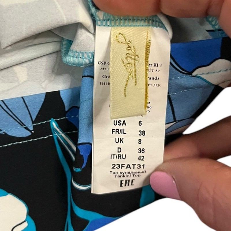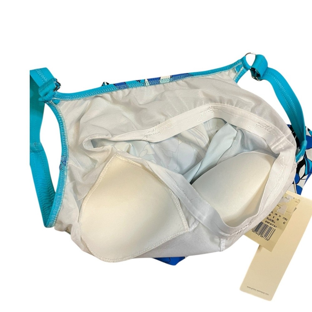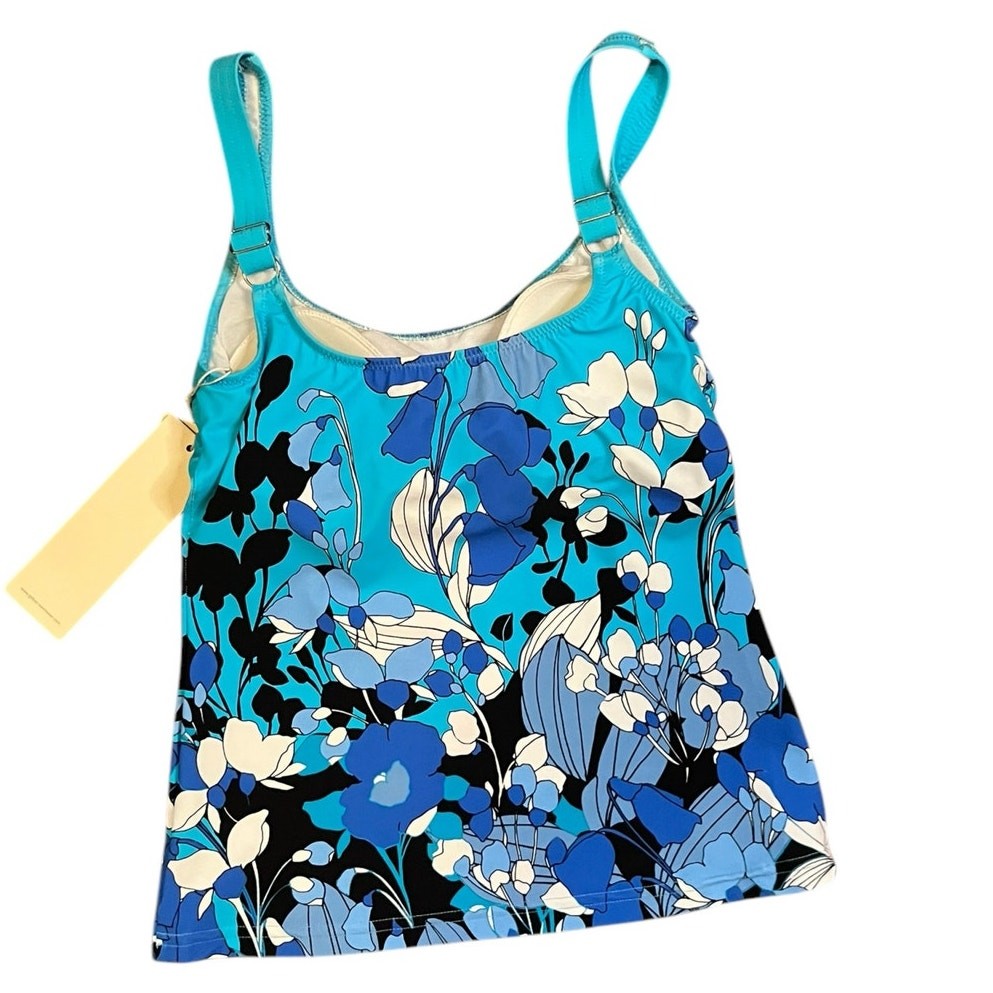 New with tags Gottex Women's Blue Floral Art Tankini Top Size 6 Adjustable straps Chlorine safe Soft cups