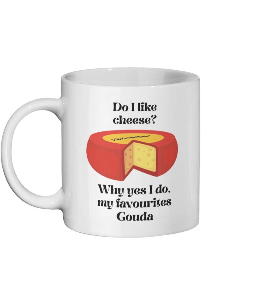 Gouda Mug Gouda Gift Cheese Lover Mug Cheese Lover Gift Funny Cheese Gift Cheese Phrase Gift For Cheese Lover Cheese Mug Gift Product Details.. This high quality 11oz. ceramic white mug has a premium hard coat that provides crisp and vibrant color reproduction sure to last for years. Perfect for all hot & cold beverages. The highest quality printing possible is used. It will never fade no matter how many times you wash it. Material: 100% Ceramic. Print both sides. Dishwasher and Microwave Safe. High Gloss + Premium White Finish. Printed in the U.S.A. Personalized & Custom. We support personalized and custom mug to add custom, when placing an order, you can add notes to the "order note" in shipping address section. Also you can contact us directly via message. Shipping Info. Ready to ship in 1 to 2 business days, All products are made-to-order and proudly printed in the United States. Shipped by USPS and DHL, You will receive your order in 5-7 days. Replace & Refund. All products are defective during shipping broken, chipped will be replaced free of charge. You are not satisfied with the product, we will refund 100% money to you. If any other issues arise, please do not hesitate to message, we would be more than happy to assist you.