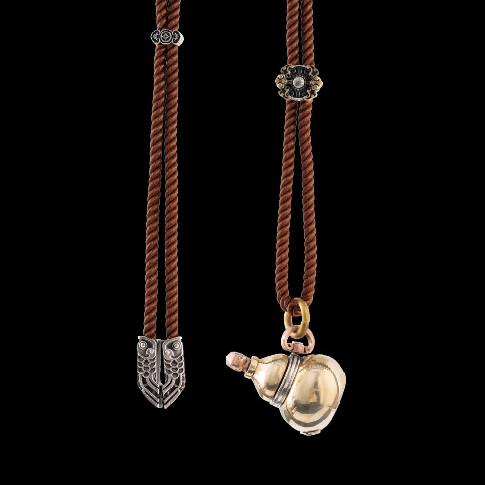 Gourd Pendant: The design is inspired by the gourd, which symbolizes hope and radiates blessings and prosperity. In oriental cultures, gourds are revered for their association with longevity, good luck, and spiritual growth. Exquisite Craftsmanship: Carefully crafted with attention to detail, the gourd pendant features a swivel handle and waist with a rubber ring to hold it in place, ensuring functionality and elegance. Delicate 925 silver auspicious clouds and ruyi motifs embellish its base, reflecting the desire for a beautiful and peaceful life. Materials & Size: Made of brass, copper, and silver to enhance the details and beauty of the pendant. Size: 1.1 inches (L) x 0.75 inches (W). Weight: 10g. This is not just a piece of jewelry; it is also a talisman of positivity and potential, inspiring the wearer towards a brighter future. Multi-Purpose Accessory: This gourd pendant easily converts to a necklace with a chain (not included) and is the perfect addition to any necklace, bracelet, or other DIY project. Its lightweight and compact design makes it ideal for everyday wear. Hole Size: 0.26” / 5.5mm. Amulet Gift: Its delicate design and deep symbolism make it the perfect gift for yourself or a loved one. Whether for a friend embarking on a new journey or a family member seeking encouragement, this gourd pendant is a meaningful symbol of hope and a promise of a better life ahead.
