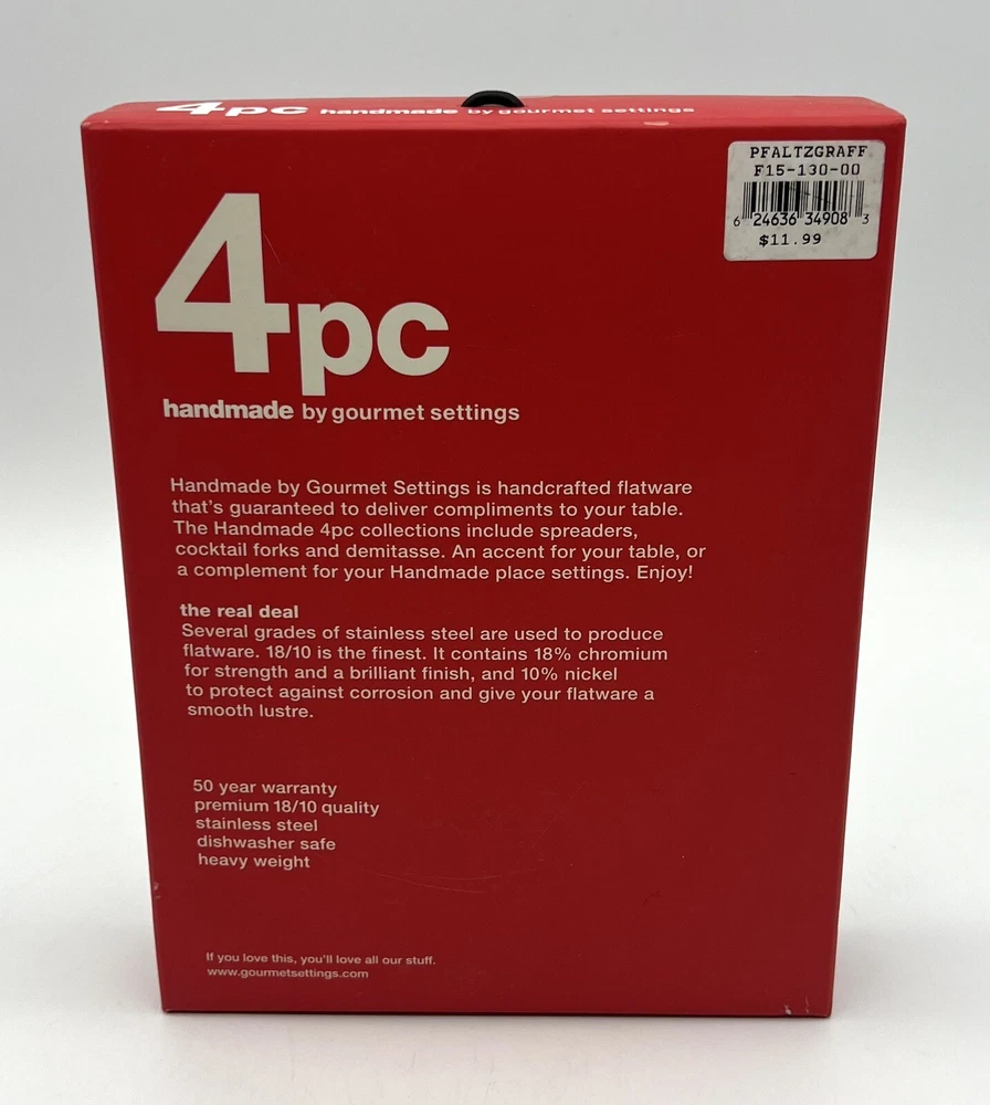 Elevate your cocktail experience with the Gourmet Settings 18/10 Quality Stainless Steel Set of 4 Cocktail Forks. Crafted from premium stainless steel with a glossy finish, these forks are a perfect addition to any occasion, be it a sophisticated dinner party or a casual get-together. The sleek silver color complements any table setting, ensuring you enjoy your beverages with a touch of elegance. Designed with both the handle and the fork crafted from durable stainless steel, these forks are built to last. This set includes four cocktail forks, making it ideal for serving a group of four. Whether you're hosting a special event or simply treating yourself, these forks are a must-have for anyone who appreciates the finer details in their flatware collection. Please check all photos carefully before purchasing,photos are part of the description,what you see is what you get. 19