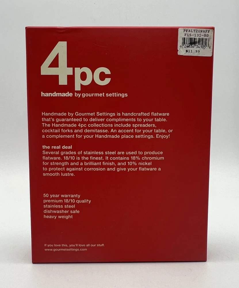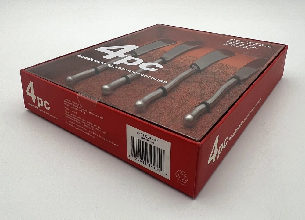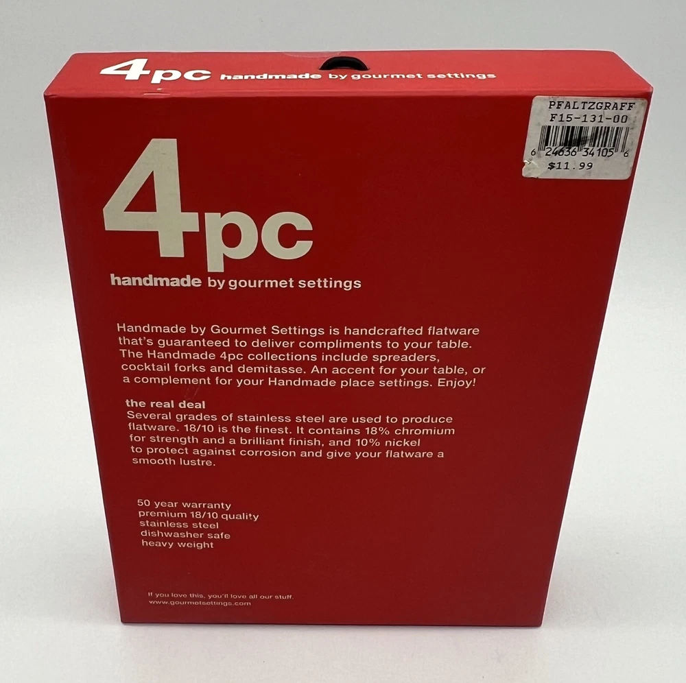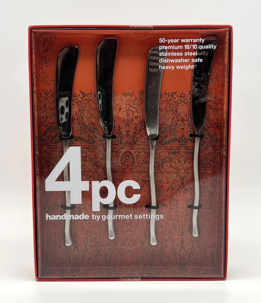 Add a touch of elegance to your table setting with this set of four spreaders from Gourmet Settings. Made of high-quality 18/10 stainless steel, these spreaders are not only durable but also dishwasher safe. The glossy finish and silver color make them perfect for any occasion. The handle material is also made of stainless steel, making them comfortable to use. These spreaders are perfect for serving butter, jam, or any other spread. With their sleek design, they are a great addition to your flatware collection. Please check all photos carefully before purchasing,photos are part of the description,what you see is what you get. 19