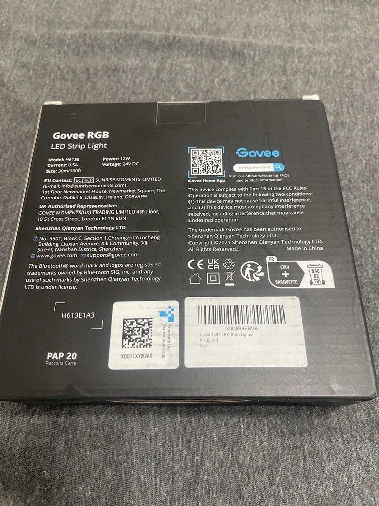 The Govee 100ft LED Strip Lights Bluetooth RGB LED Lights with App Control (Model H613E) is a modern and stylish lighting solution for indoor use. These multicolor RGB LED lights can be controlled via the Govee app, offering a variety of lighting effects to suit any occasion, such as Father's Day or Christmas. With a power source of 24 volts and a wattage of 12 watts, these LED strip lights provide bright and vibrant illumination. The rope/wire design and light kit included make it easy to install and create a personalized ambiance in any room.