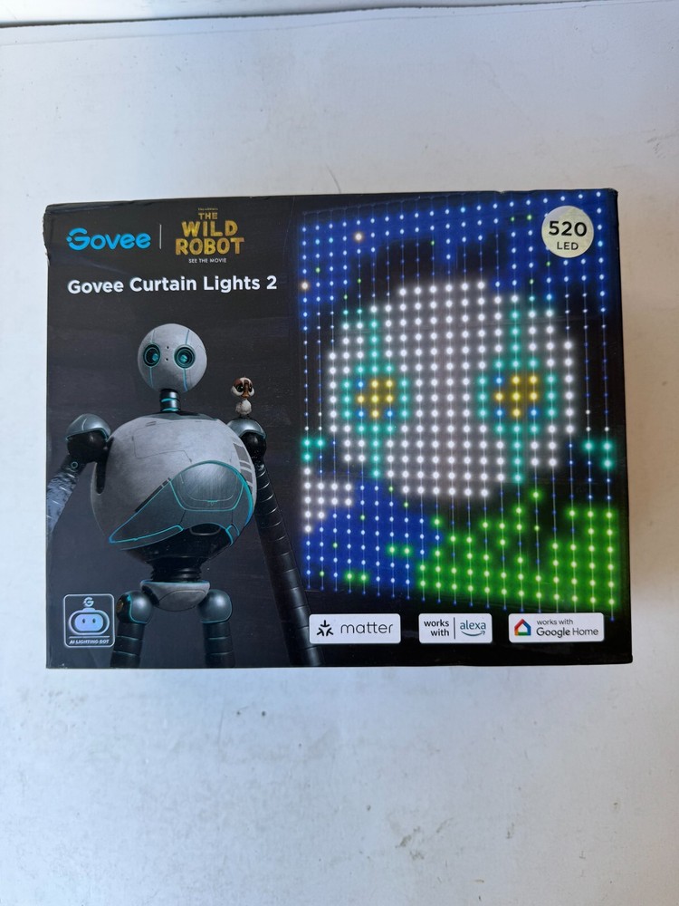 Govee H70B3 The Wild Robot Curtain Lights 2 Lights String Alexa Enable (520 LED) Description Govee H70B3 The Wild Robot Curtain Lights 2 Lights String Alexa Enable (520 LED) . Product Detail • Brand : Govee • Model : Govee H70B3 • Color : Multicolor • Type : Lights String Please message me if you have any questions.