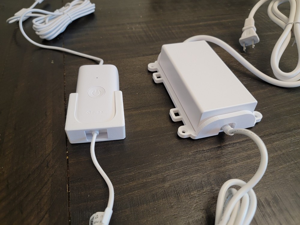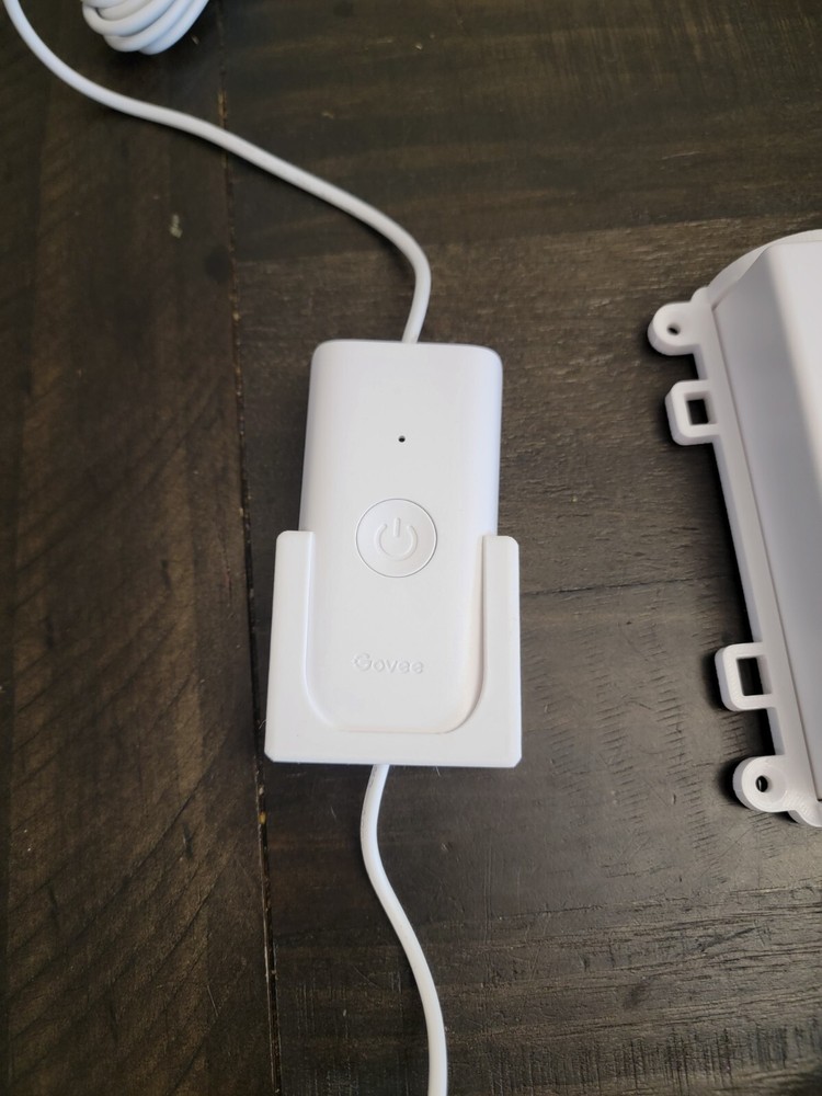 Govee permanent outdoor lights Power box and controller mounts. Made from PETG to withstand outdoor elements. The power box mount has two zip tie spots to help tie wires out of the way. (Zip ties not included) Will work with all models, originals, 2's/Elites, and the Pros. Comes in White or Black