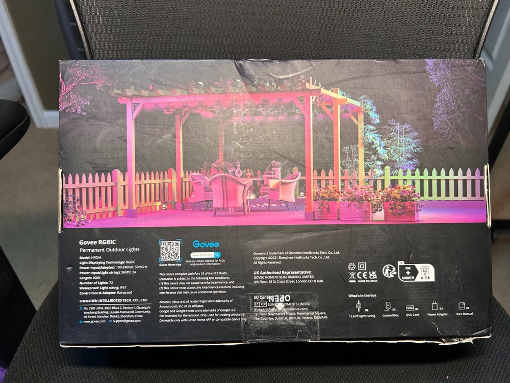 Govee Permanent Outdoor Lights, Smart RGBIC Outdoor Decor with 75 Scene Modes, 100ft with 72 LED Lights, IP67 Waterproof for Holiday Decorations, Compatible with Alexa, Google Assistant, Black **Ships free to the lower 48 states**