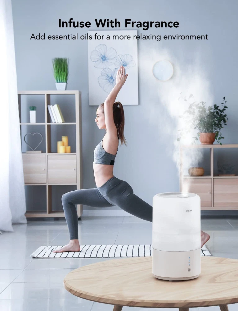 Govee Smart Humidifiers for Bedroom, Top Fill 3L Cool Mist Humidifier, 24 dB Super Quiet, Auto Mode, 30H Runtime, 360°Nozzle with Adjustable Mist Air Humidifier for Large Room, Baby Nursery and Plants Description Features: Humidifying Gets SmarterGovee Smart Air Humidifiers support Govee Home APP or Voice Assistants connection. Easily fully control your humidifier, allowing you to effortlessly customize the cleaning experience to your preferences. Compatible with Alexa, Google Assistant, and IFTTT.(Only Support 2.4G Wi-Fi.) Auto Mode The cool mist humidifiers will turn off at your target humidity, and it will turn back on by itself when it drops below 3% of the target humidity level. Need to connect to a Govee Thermometer Hygrometer to use this function. (Thermo-hygrometer not included)Option to turn off lights, allowing you to sleep comfortably without being affected by light. 30H Non-Stop & Quiet OperationThe baby humidifier with a 3L water tank and up to 30 hours of use, so you don't need to worry about frequent water additions.8 mist Level and up to 200ml/h of ultra-fine cool mist bringing faster moisture to the air in a large room/baby nursery/bedroom. It helps to relieve nasal congestion, cough, and dry skin. The humidifier noise is reduced to 24dB, so you can enjoy a peaceful night's rest. Top-Fill Design & Easy to CleanThe plants humidifiers for bedroom have a water tank design to easily pour water in and out. (Distilled water or purified water is recommended) The bottom design is simple and easy to clean. (We recommend that you clean it every 2 weeks). The 360 nozzle design enables you to customize the direction of the mist, which is more friendly to your plant growth. 2-in-1 Fragrance Therapy HumidifierEquipped with an aroma tray, you can add off your favorite essence when you rest at home to bring a soothing aroma. In addition, Using the App to adjust the custom mode, display off, timers, and schedules, this humidifier can provide you with extra convenience. Product Details: Brand: Govee Special Feature: Voice & App & Touch Control, As Low as 33dB, Auto Mode with Govee Hygrometer Thermometer Color: White Product Dimensions: 6.7"D x 6.7"W x 11.6"H Item Weight: 3.34 Pounds Brand: Govee Special Feature: Voice & App & Touch Control, As Low as 33dB, Auto Mode with Govee Hygrometer Thermometer Color: White Product Dimensions: 6.7"D x 6.7"W x 11.6"H Item Weight: 3.34 Pounds Room Type: Baby,Bedroom,Wifi Model Name: H7141 Voltage: 120 Volts (AC) Wattage: 20 watts UPC: 850030064998 Manufacturer: Govee Item Weight: 3.34 pounds Item model number: H7141 Date First Available: September 30, 2021 Handling We will ship all orders within 3 business days of payment. Delivery We do not ship outside of the Continental US. Feedback We take our reputation seriously, we buy and sell online, so we understand the value of trust. If you are unsatisfied with your order, please contact us and we will work with you to resolve it to your satisfaction.