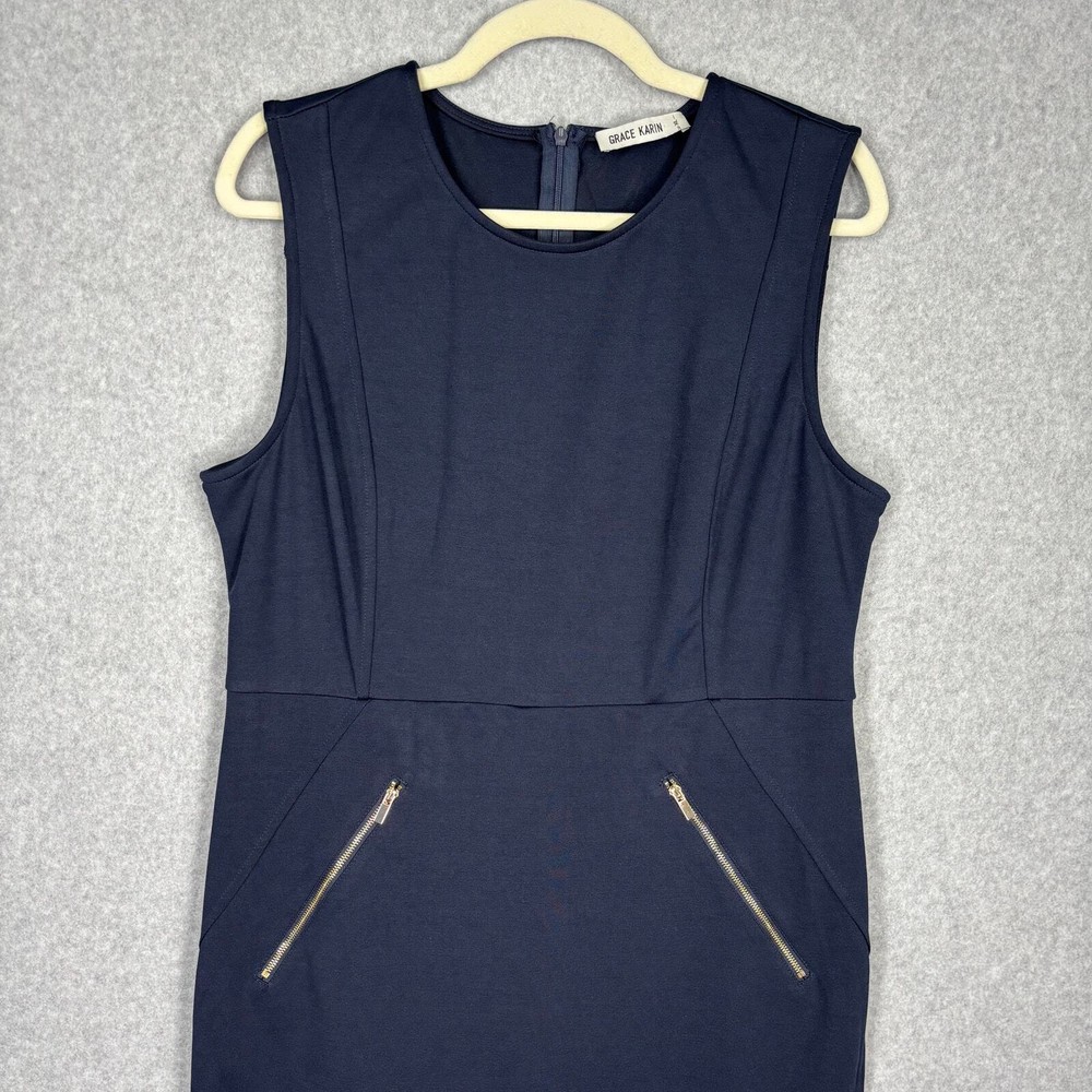 Grace Karin Dress Womens XL Navy Blue Gold Zippers Career Church Capsule Classic Knee Sleeveless Corp Career Work Office Business Church Preppy Nautical Knit Slit Sheath Pre-owned condition: minimal to no signs of wear, no stains or holes SKU 5635 **Please see all pictures for full item condition, details, and approximate measurements** - Ships Same/Next Day, Professional Seller, Offers Welcome, Like or watch for price drops - Item in photos is exact item you will receive - I list new items daily, be sure to browse my store/closet for more items - Bundle pricing and combined shipping available for additional savings - Feel free to send a message