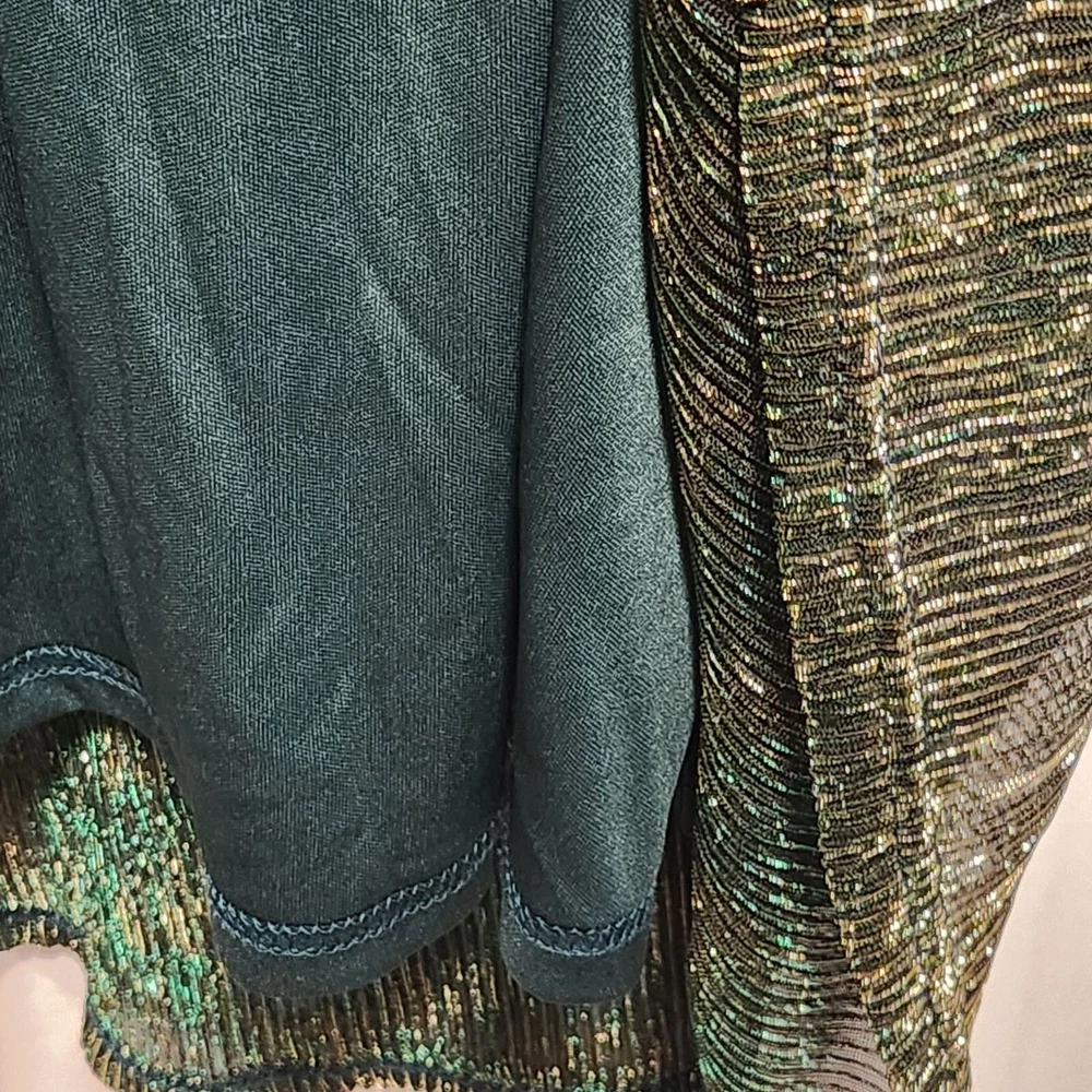 NWT Women's size XL, Grace Karin maxi fashion dress. Green with gold stripe foil, a crossed V-neckline with snap for closure, and long sheer sleeves. The dress is lined with an green lining and has a matching belt. Polyester and viscose, made in China, machine washable. Measurements are approximate: Pit to pit - 21" Shoulder to shoulder - 16" Sleeve length - 25.5" Overall length - 45" Washed per label instructions, stored in a smoke-free and pet friendly environment. Thanks for looking! All orders ship within two business days, reasonable offers accepted.