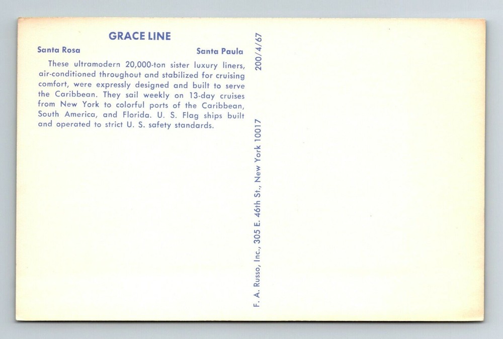 Grace Line Santa Rosa Santa Paula Vintage Luxury Liner Souvenir Postcard