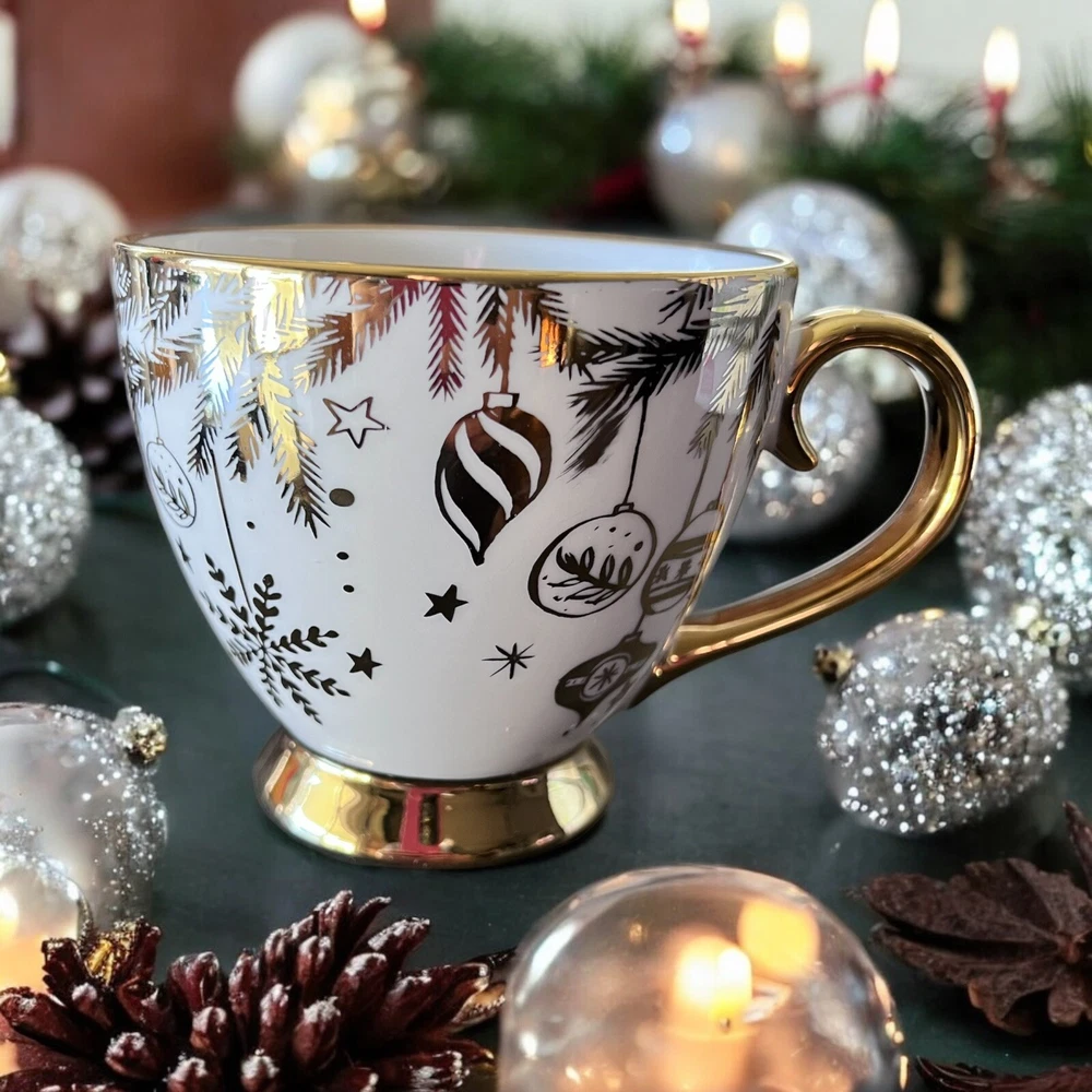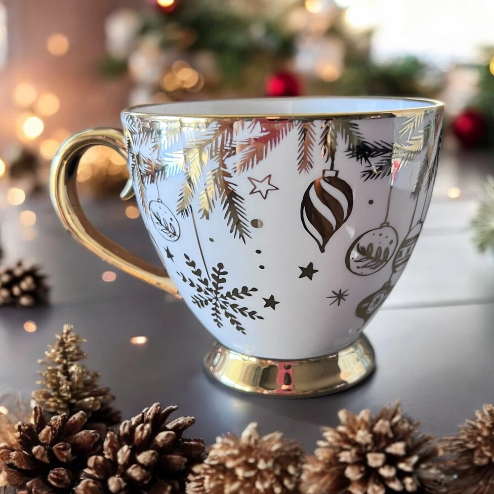 Add some festive cheer to your tea time with this beautiful Grace Teaware holiday ornament tea cup. The cup features a stunning ornament pattern that's perfect for any occasion, whether it's a bridal shower, engagement, Christmas, winter, New Year's, anniversary, or just a regular Sunday afternoon tea. With a generous capacity of 12 fl oz, this ceramic mug is perfect for your daily tea fix or as a gift for your loved ones.