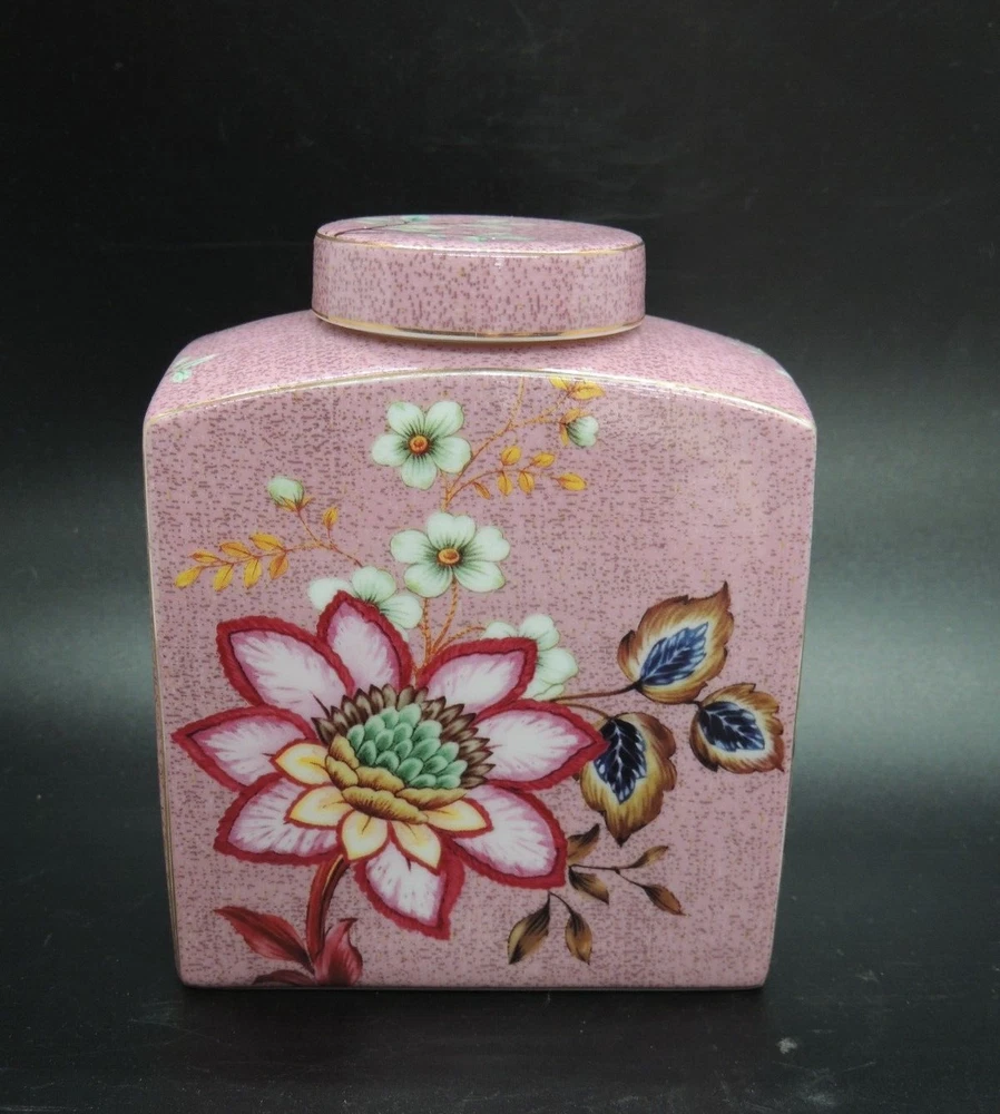 Grace Teaware Ceramic Square Tea Caddy Tea Box Tea Jar with Lid Mauve Floral -Measures about 4 1/2" tall by about 3 3/4" wide -Pre-owned in very good condition with no chips or cracks, may show slight signs of shelf ware, beautiful color and design -Please examine all photos, they are part of the description -Comes from a smoke free home -If you have any questions, please ask