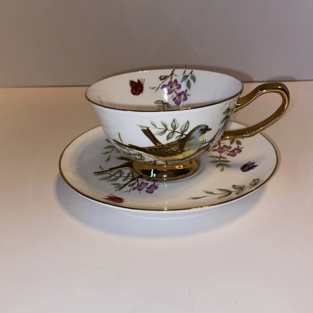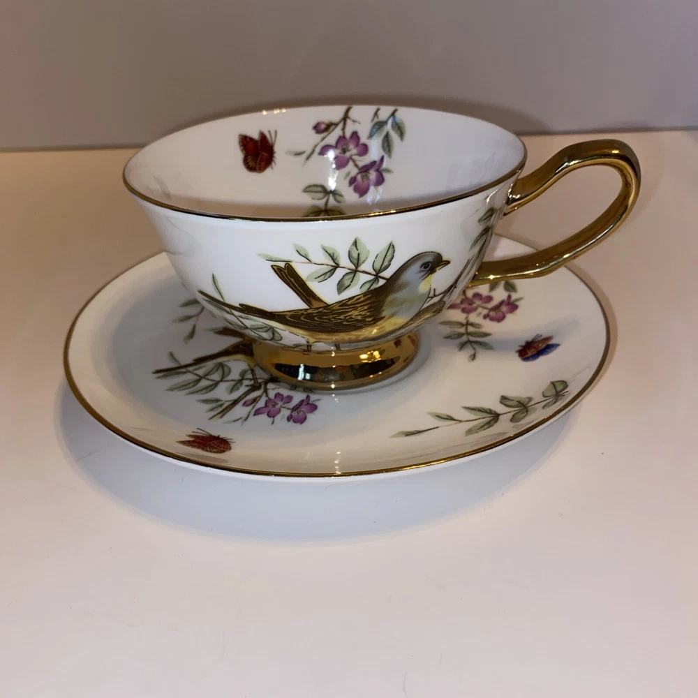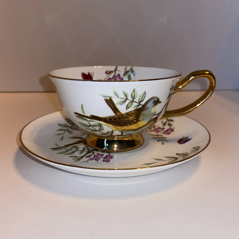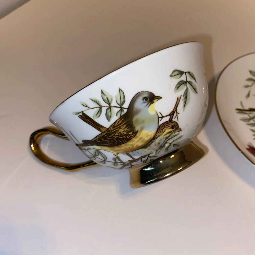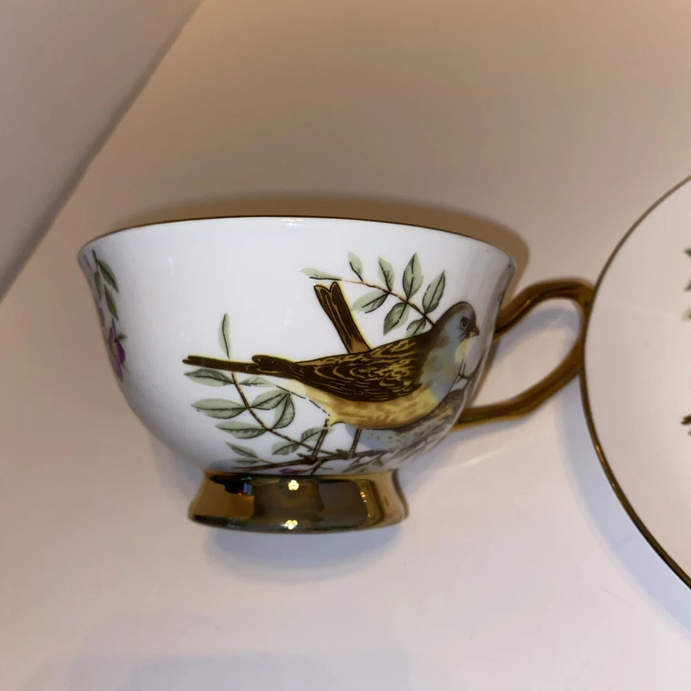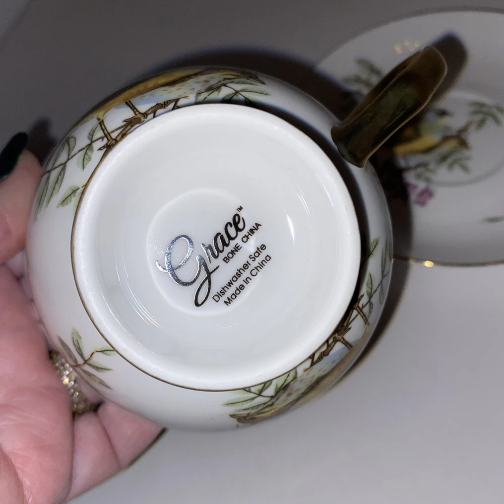 Grace Teaware Fine Porcelain Birds & Floral Garden Tea Cup & Saucer Blossom
