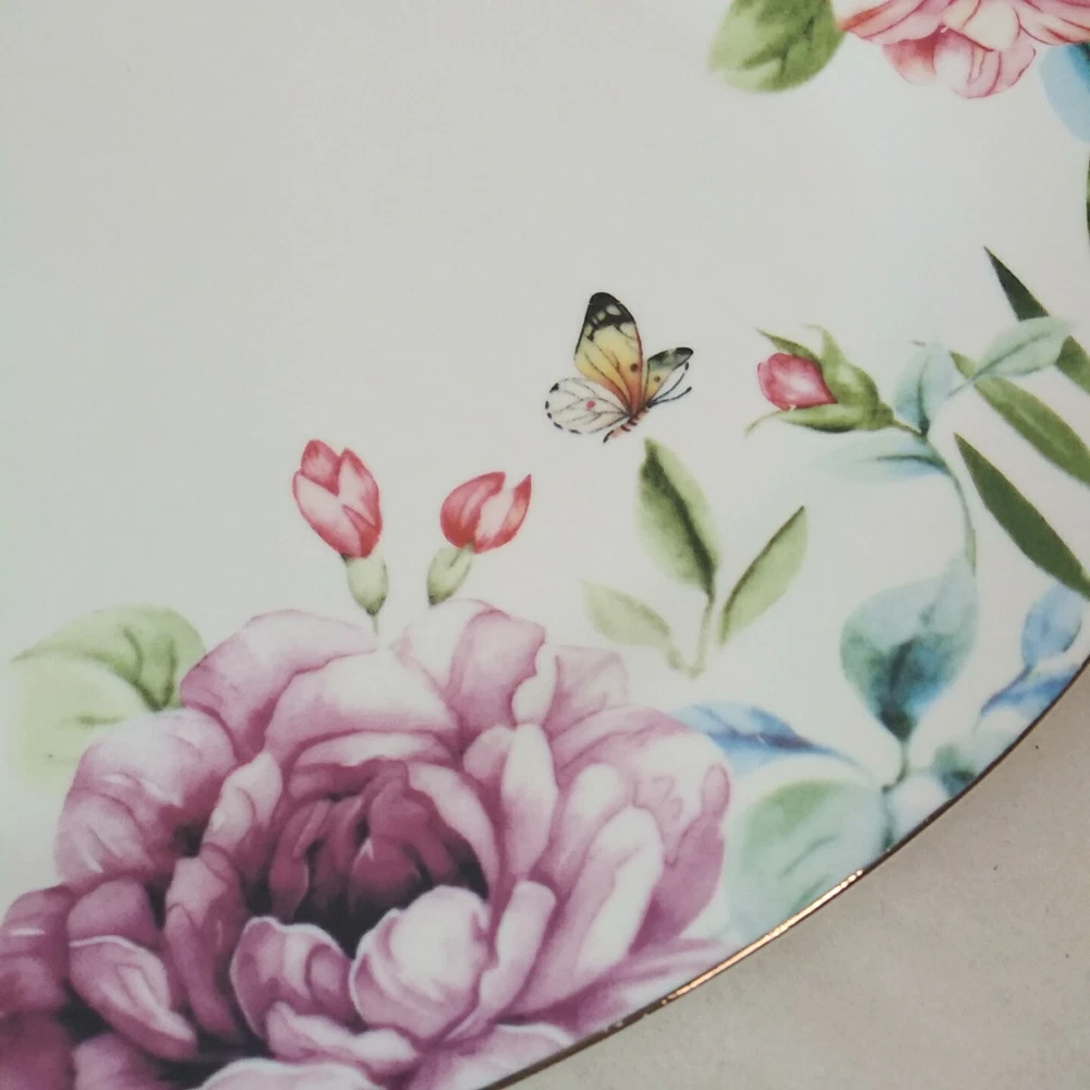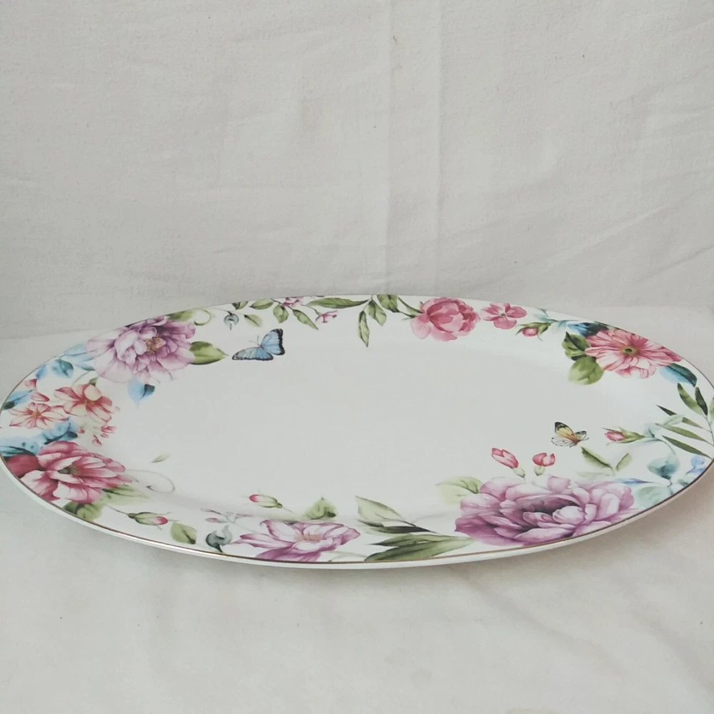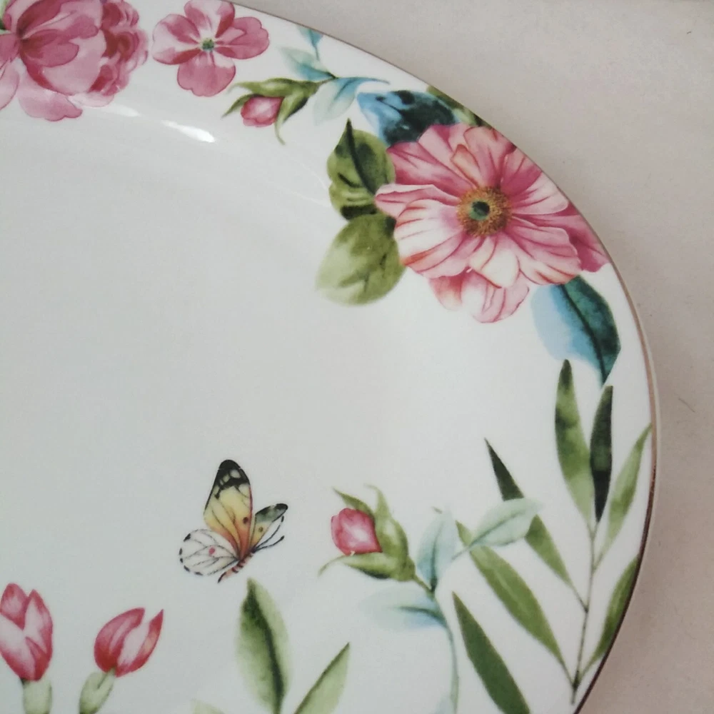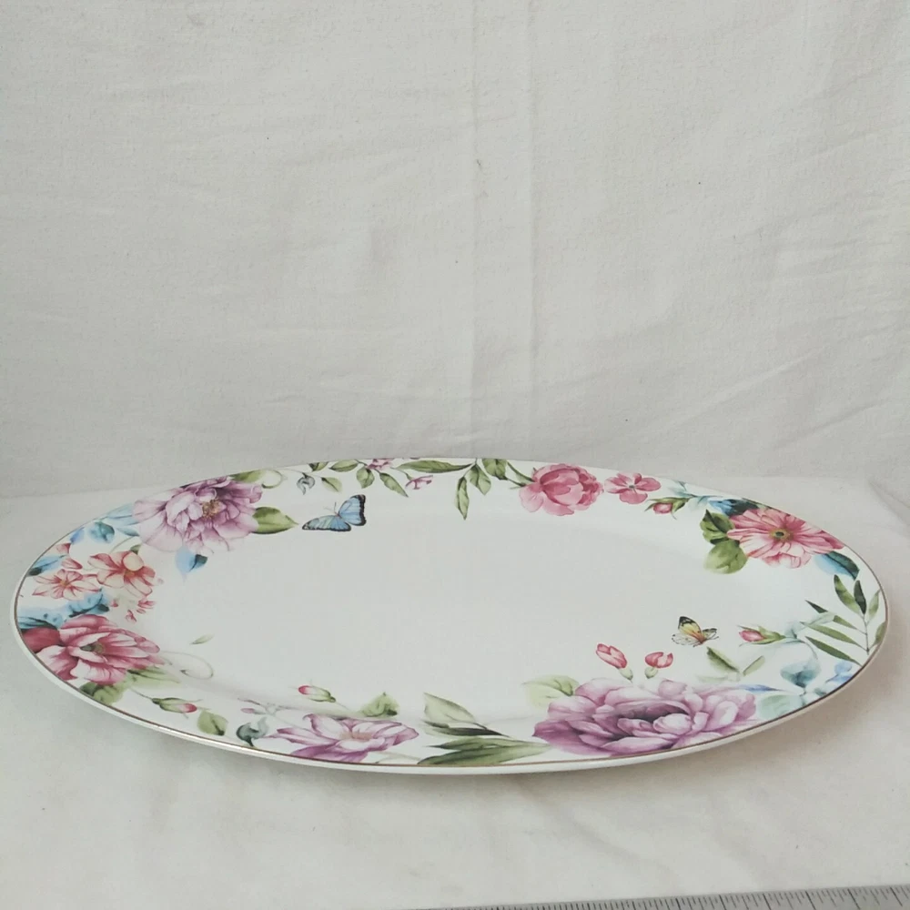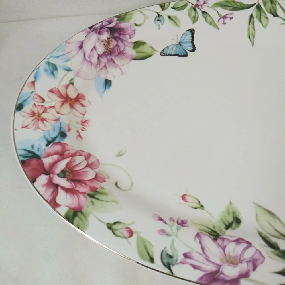Grace Teaware Floral Oval Porcelain Serving Tray / Platter 14* 9.5"x 14" Really Good Condition Weighs 1 lb 12 oz Shipping USPS This beautiful Grace Teaware serving tray/platter is perfect for any tea party or gathering. The floral pattern in a variety of colors adds a touch of cottage style to any occasion. Measuring 14 inches in length and 9.5 inches in width, this small oval-shaped piece is made of glossy porcelain material. The tray is microwave and dishwasher safe, making it convenient for use and cleaning. Its multicolor design and wild rose theme make it a great addition to any collection. This piece is perfect for serving tea or other beverages and is sure to impress your guests.