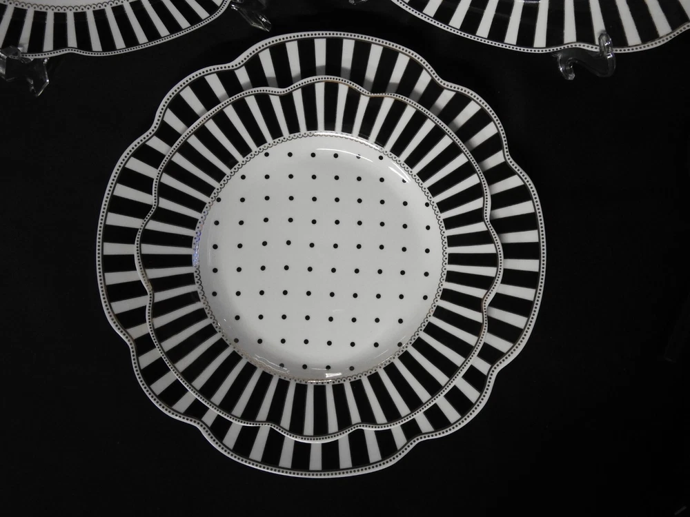 Color: Black & White Type: Dinner Plate Material: Porcelain Set Includes: Dinner Plate, Salad Plate Brand: Grace's Teaware