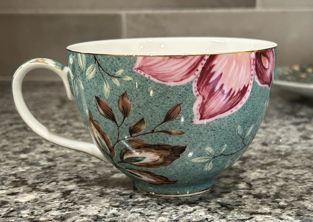 Grace Teaware Peacock Lotus Garden Flat cup and saucer set No chips/cracks/crazing/loss of detail Cup: 3.75”D 4.75”L 2.5”H Saucer: 6.25”D Please message with any questions.