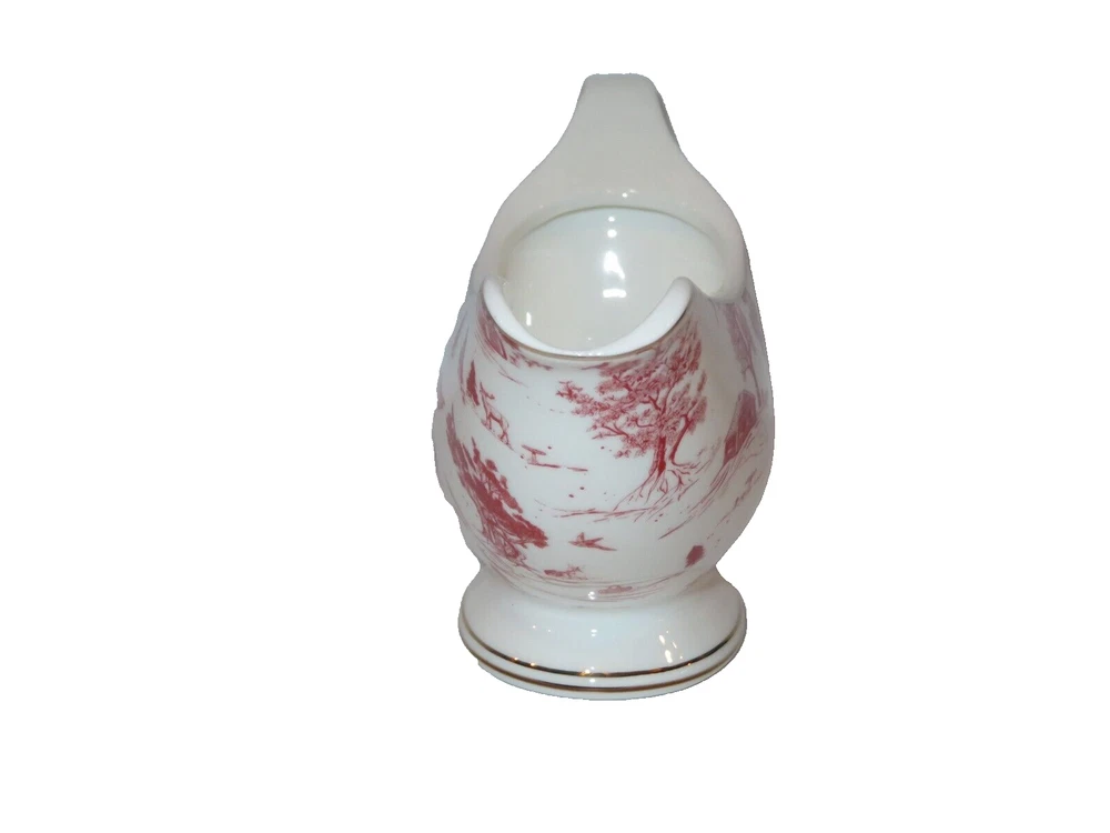 This sale is for one new ceramic gravy boat in a red and white, with gold trim and accents, woodland Christmas pattern by Grace Teaware. This item measures 3-3/4" deep to spout and the opening is 6-1/4" by 2-1/4". It holds approximately 10 ozs. Please note that a lot of our items we sell have been gently used, unless described as NEW. We know times are hard, so our goal is to bring you a quality product at a fair price! Please give us the opportunity to work out any problems or questions you have regarding any purchases. We GUARANTEE that we will pack your order to prevent breakage—however, if a USPS truck runs over it, or if someone uses it as a football and you receive it broken, WE WILL REIMBURSE YOU 100% IMMEDIATELY (on PayPal payments ONLY)! SHIPPING - If you are shipping to a P.O. Box, please do not select FedEx, as they do not ship to P.O. Boxes. Please do not ask us to discount shipping costs. We charge ONLY the exact cost of shipping your item, nothing more, and have absolutely no control over shipping costs . We combine items to save you money, and we reimburse any overpayment of shipping over $1 back to you. Ebay does not calculate correct shipping cost for multiple items. PLEASE e-mail us and ask us for the shipping price on a multiple-item purchase BEFORE you buy or pay. Immediate payment required.