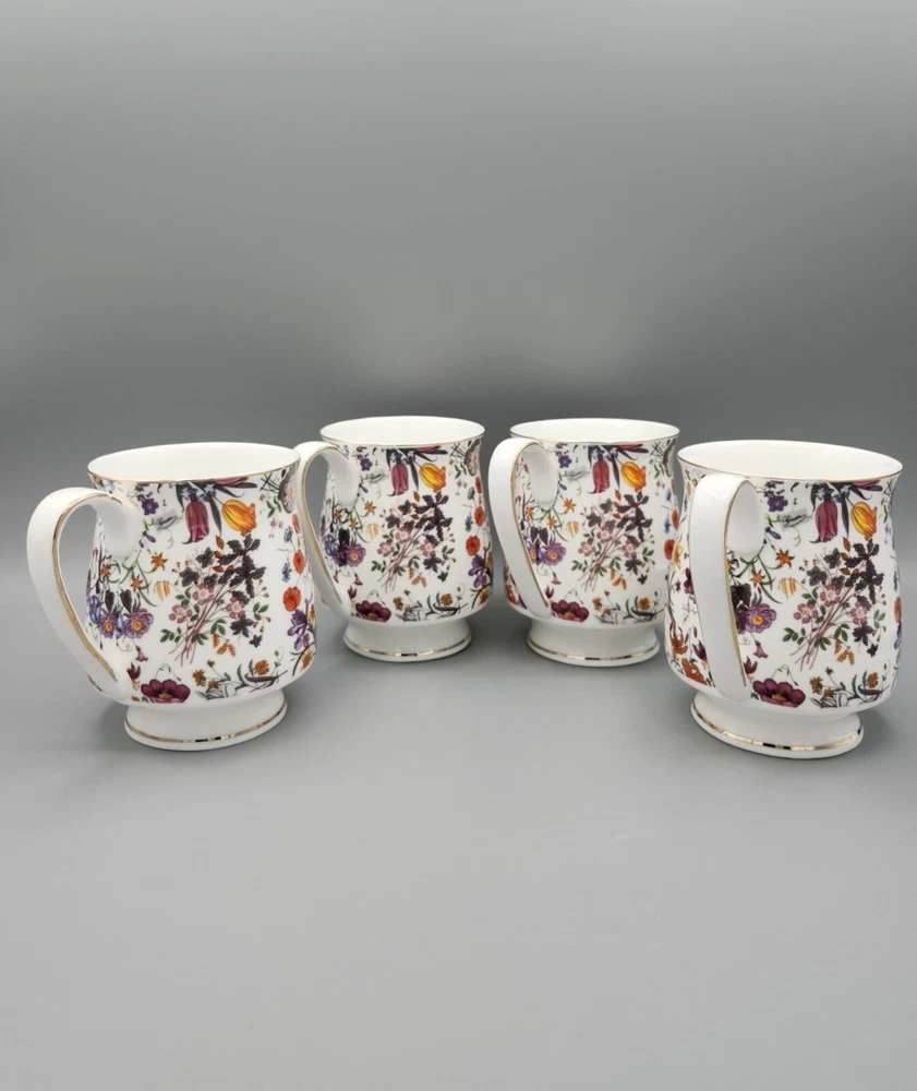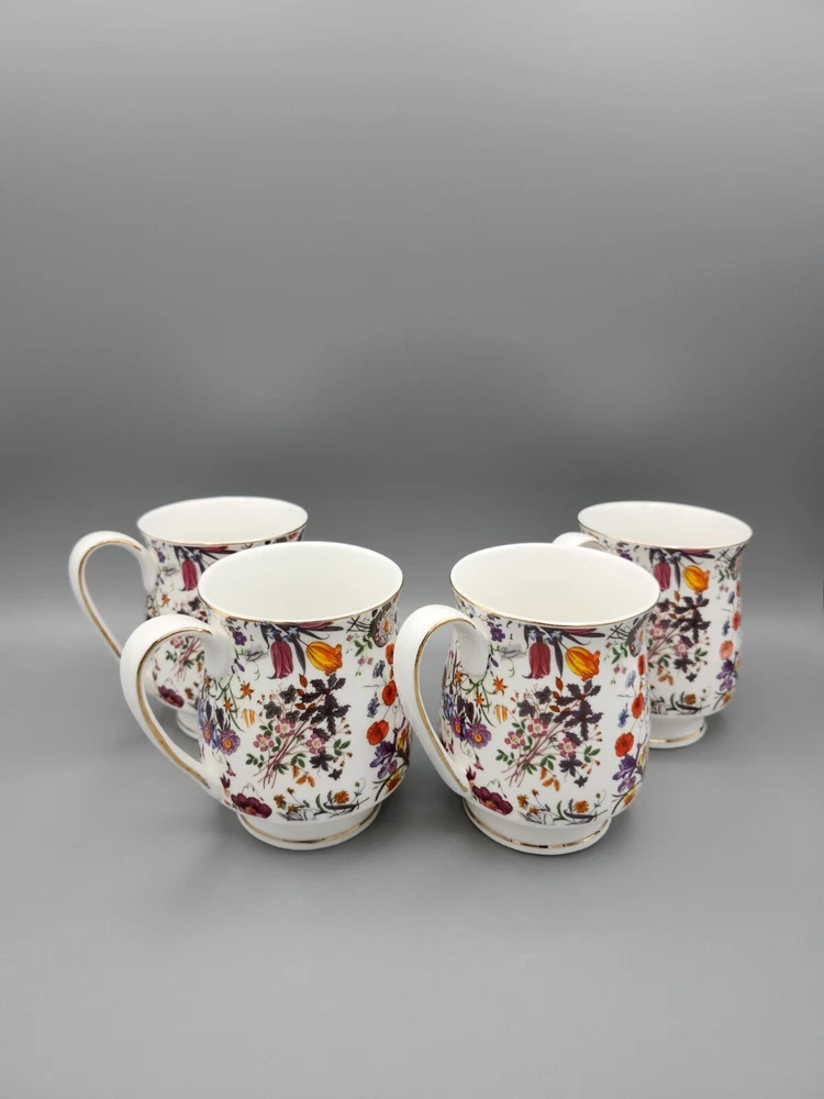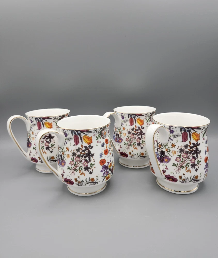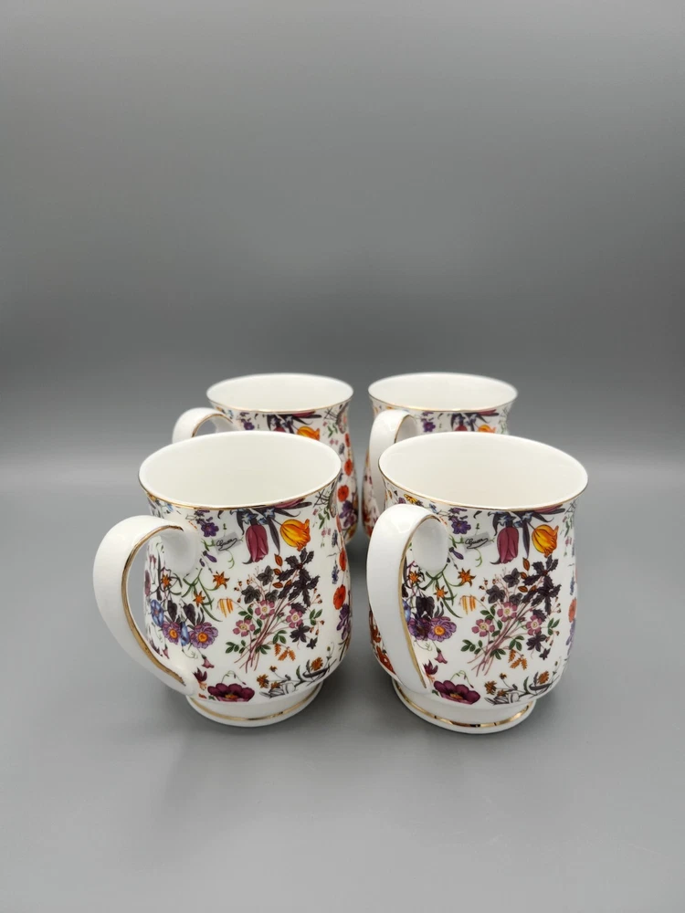 Grace's Teaware Colorful Floral Footed Coffee Tea Cups with Gold Trim Set of 4 Measures approximately 4" H x 3" in diameter. For a comprehensive evaluation of the item's condition, I recommend reviewing the attached photos. They provide a detailed visual representation that will assist in your assessment. Please be aware that this item is being sold in a vintage/used condition, which may include signs of wear consistent with its age. Every effort has been made to accurately describe and photograph any flaws or imperfections present. However, due to the nature of vintage/used items, minor flaws may go unnoticed. If you have any questions or require additional photos, please don't hesitate to reach out before making your purchase. Your satisfaction is our priority, and we want to ensure a transparent and enjoyable shopping experience. To initiate a refund for an item damaged during shipping, please provide a clear photo of the merchandise and its packaging within 3 days of delivery. This documentation is necessary to process your refund efficiently.
